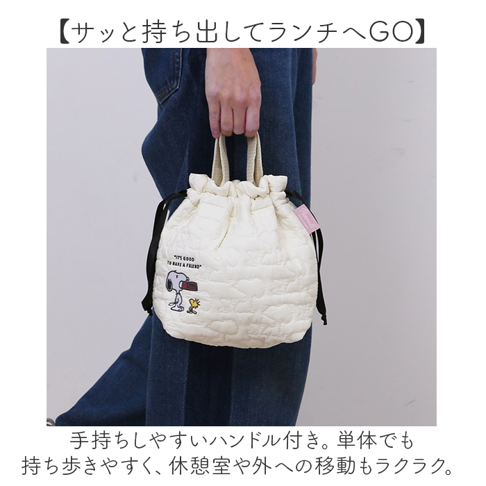 | 商品説明 | ・・【ほっこり癒しデザイン】 ・キルトとキャラクターのデザインが癒される♪保冷機能付きランチ巾着♪ ・【可愛いキャラクターデザイン】 ・大人気のキャラクターが描かれたデザイン!ワッペンやステッチがポイント◎※1 ・【ぬくもりを感じるキルト生地】 ・表地はキルト生地でナチュラルでぬくもりを感じる大人可愛い仕上がり! ・【サッと持ち出してランチへGO】 ・手持ちしやすいハンドル付き。単体でも持ち歩きやすく、休憩室や外への移動もラクラク。 ・【保温保冷効果で持ち運びも安心】 ・お弁当の温度変化を抑える、内側アルミ蒸着仕様。暑い日の持ち運びも活躍☆ ・【保冷剤収納付き】 ・内側にメッシュポケット付き。保冷剤や持ち運び用のタレや醤油入れを一緒に入れても◎ ・【キュッと絞って冷気を出さない】 ・開口部はキュッと絞れる巾着タイプ。冷気を外に逃がしにくい作り。 ・【色んなタイプのお弁当箱に対応】 ・お手持ちのお弁当箱や、適用する品番のランチジャーがすっぽり。マルチに使える♪ ・※2 当店別ページにて販売中のSTLB1 LDNC6 KCLJC6 LJFC2N LJFC3 などのランチジャーが収納できます。 ・【ポケット仕様】 ・メインルーム・・・オープンポケット×1 ・【注意事項】 ・※1デザインにより、キャラクターの刺繍ワッペンや刺繍ロゴなど、仕様が異なります。 ・※2 当店別ページにて販売中のSTLB1 LDNC6 KCLJC6 LJFC2N LJFC3 などのランチジャーが収納できます。当ストアの検索窓に上記商品コードを入力し検索してください。 |