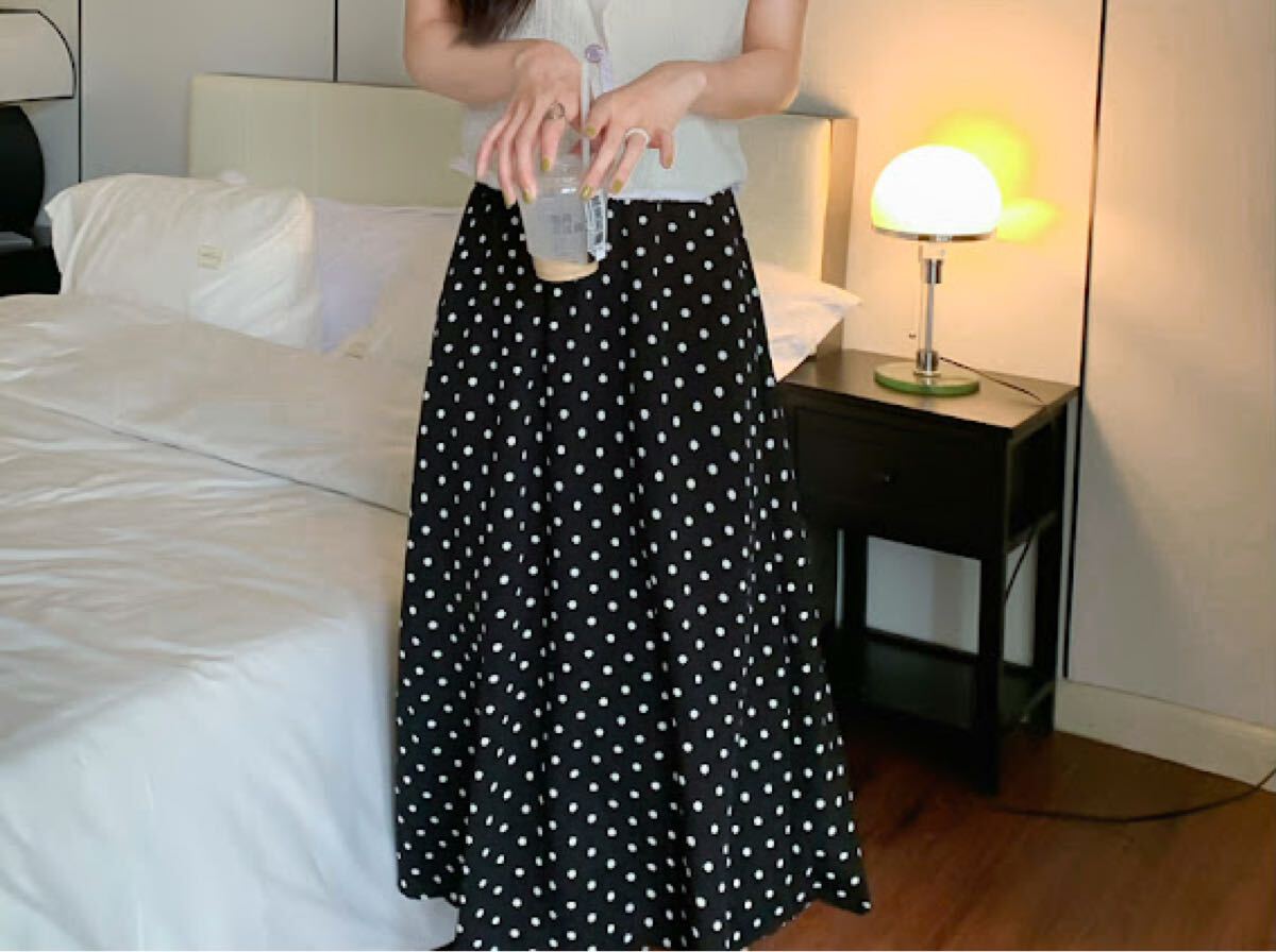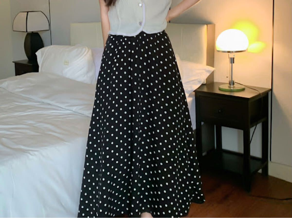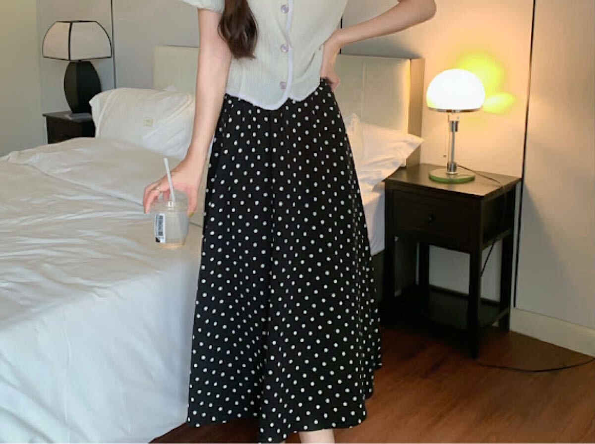 ドット柄 デザインが 華やかな雰囲気を演出してくれる ロング丈 スカートになります。シンプルなトップスと合わせるだけでもおしゃれさんに大変身です足元はスニーカーやブーツ、サンダルと何とでも相性抜群です17kg(イチナナキログラム) や STYLENANDA(スタイルナンダ) 、 WEGO(ウィゴー) や SPINNS(スピンズ)、 DHOLIC(ディーホリック) その他 原宿系 や 韓国ファッション がお好きな方はオススメです