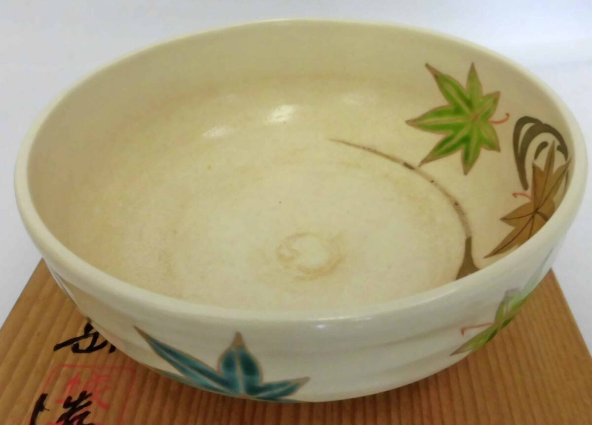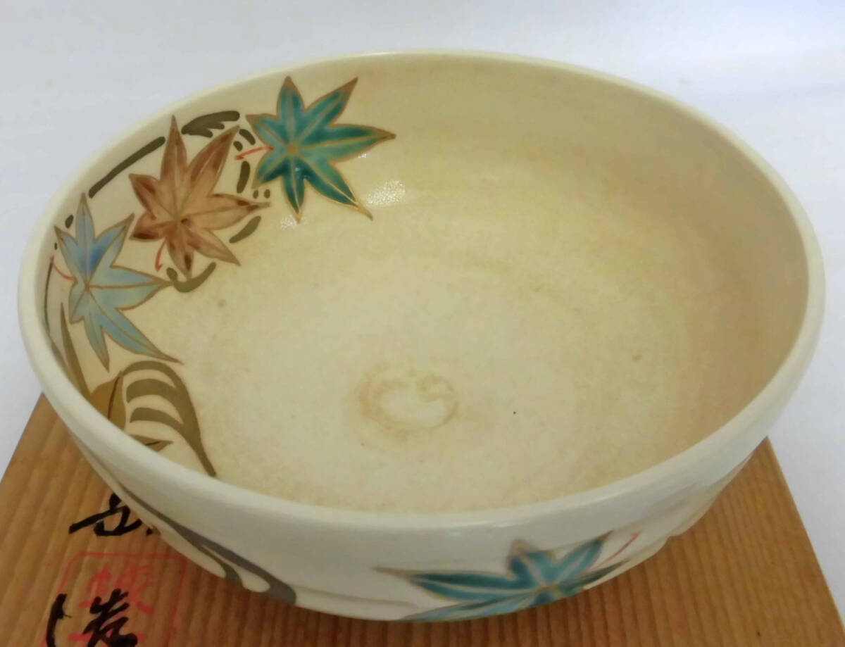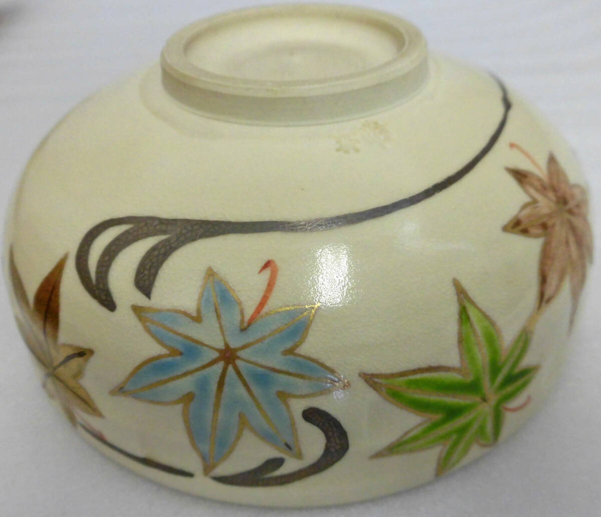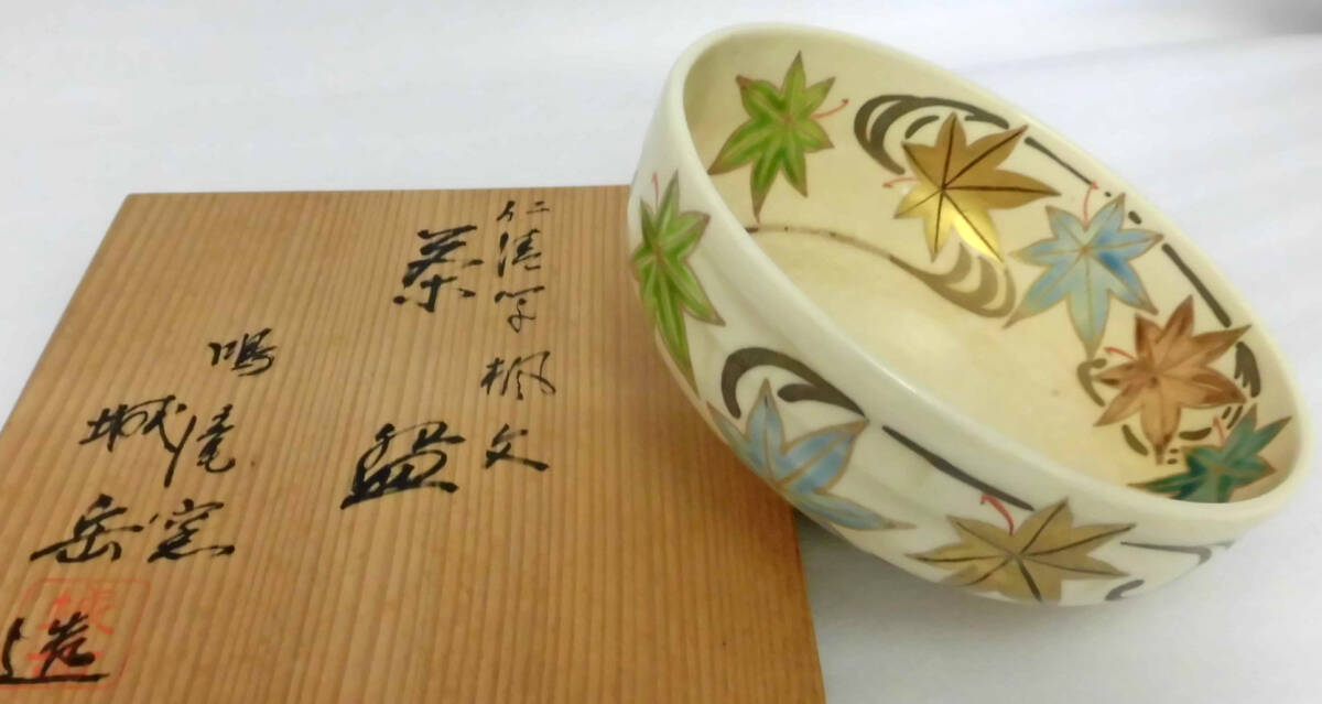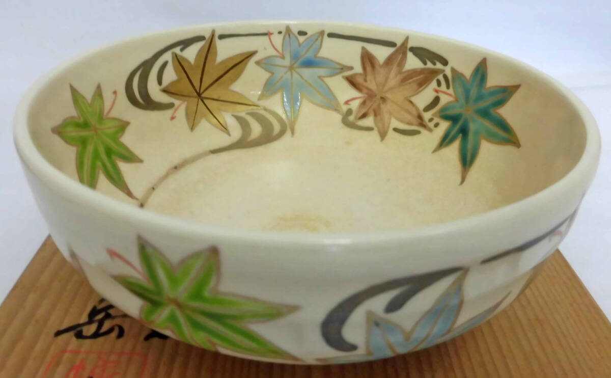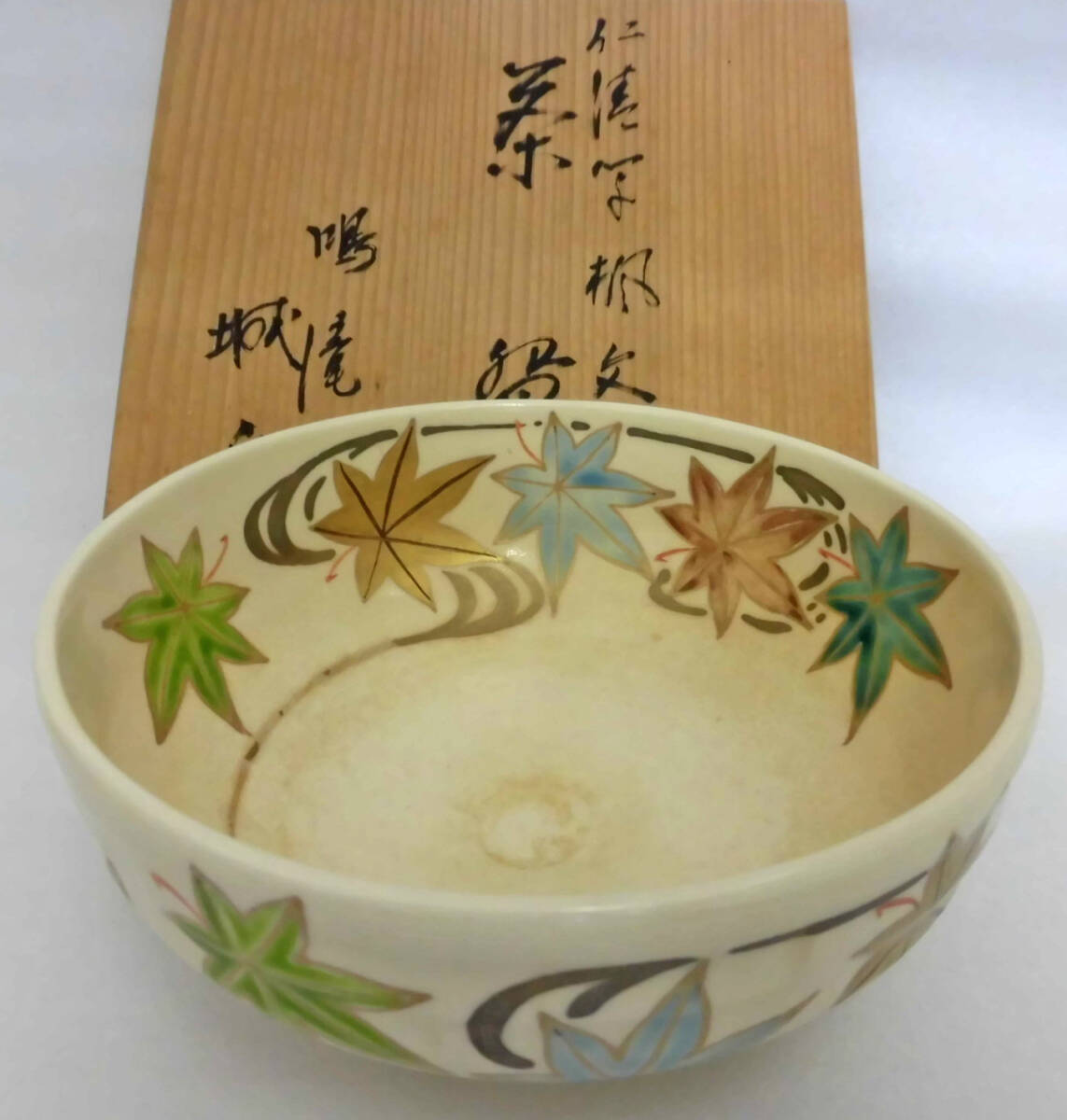 | 仁清写青楓水紋 京焼茶碗 共箱 :鳴滝窯 城岳造 | ||