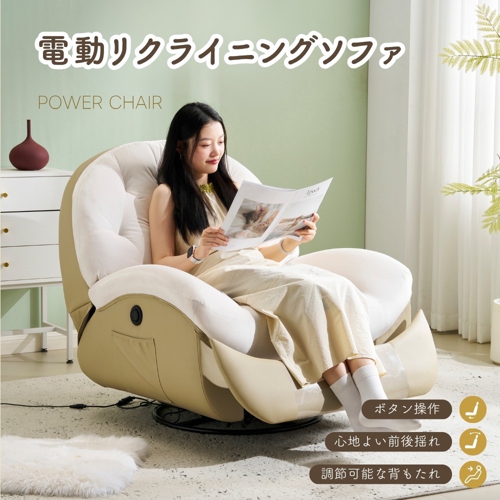 電動1人掛けソファー リクライニングチェア ゲーミングチェア リクライニングソファ電動ソファ ベルベット 貝殻のデザイン 270度回転式