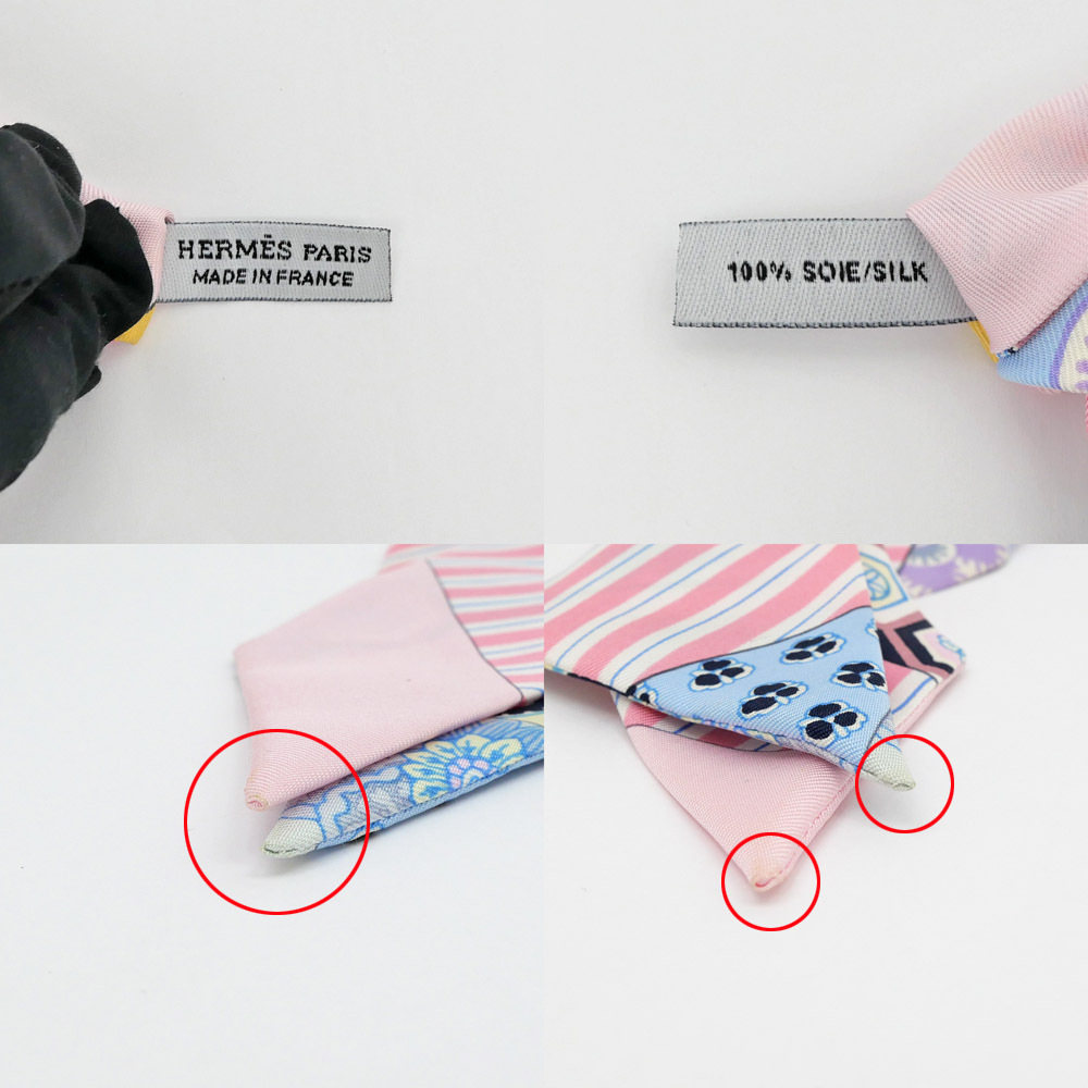 【名東】エルメス シュシュ ベッラ ピンク 水色 シルク ヘアアクセサリー 小物