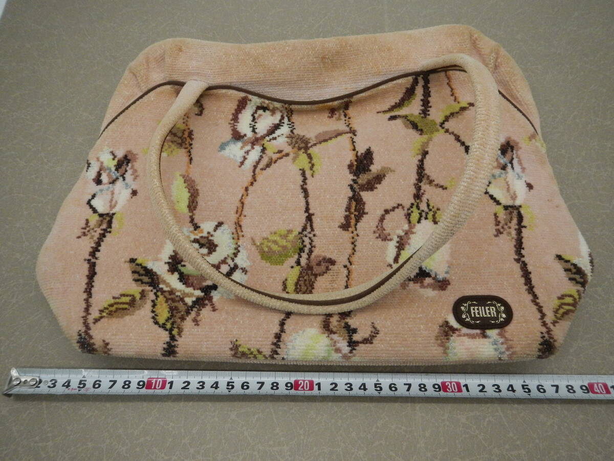 FEILER / 花柄 ハンドバッグ ベージュ シュニール織 ローズ ピンクベージュ C-272