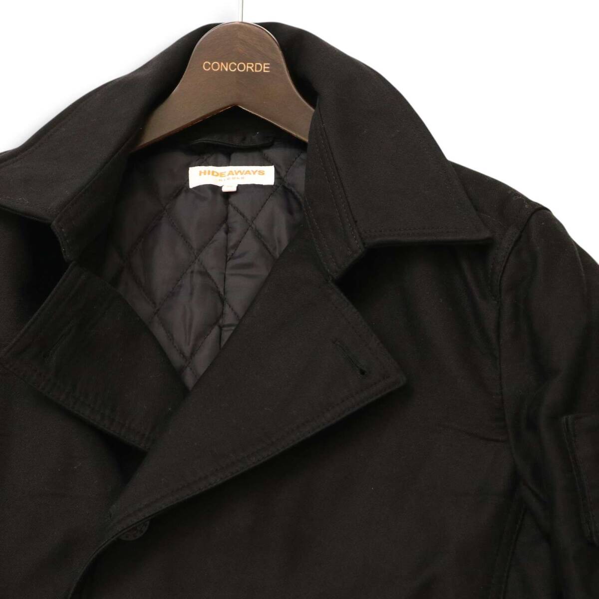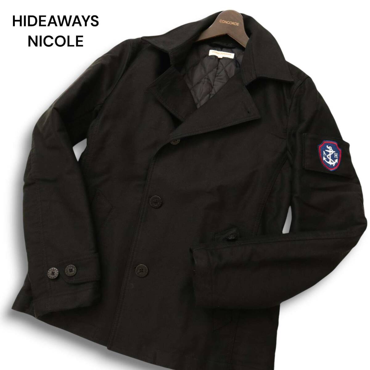 HIDEAWAYS NICOLE ハイダウェイ ニコル 秋冬★ エンブレム★ 中綿 ミリタリー Pコート ブラック Sz.48 メンズ 黒
