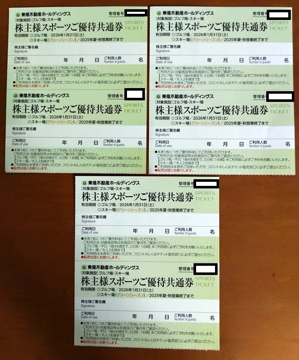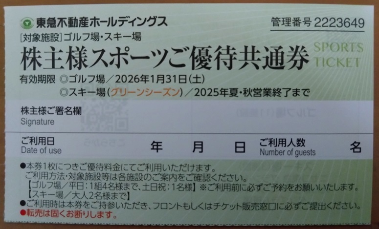 株主優待 東急不動産 スポーツ優待共通券6枚セット