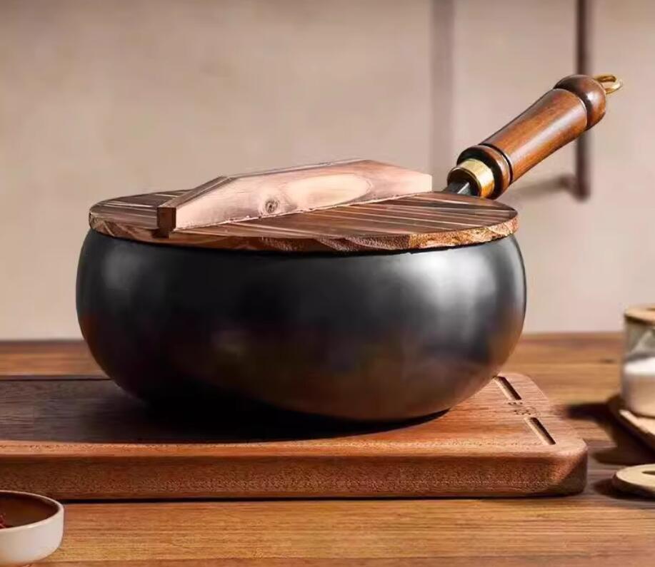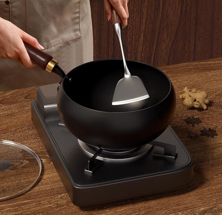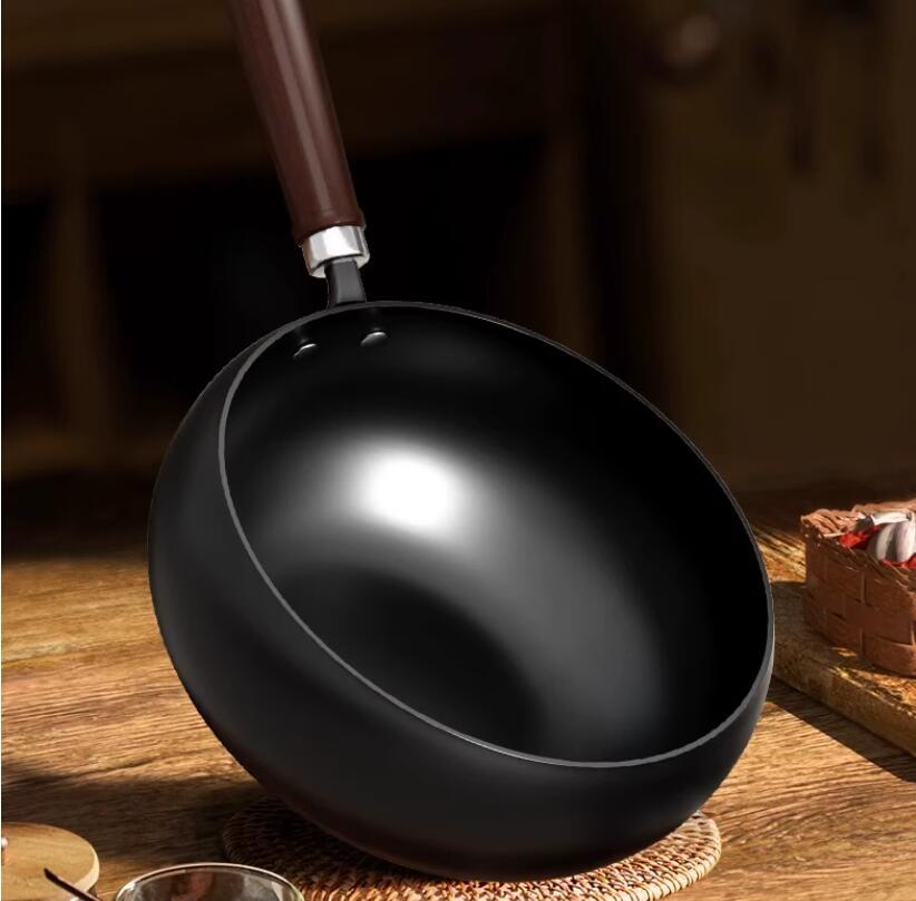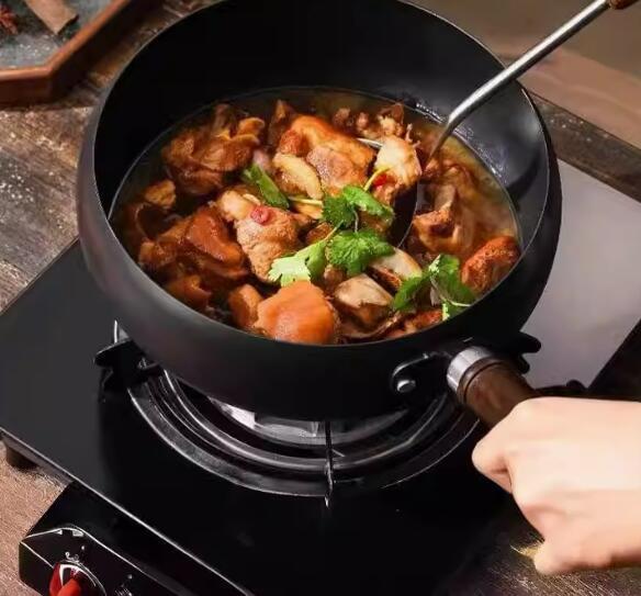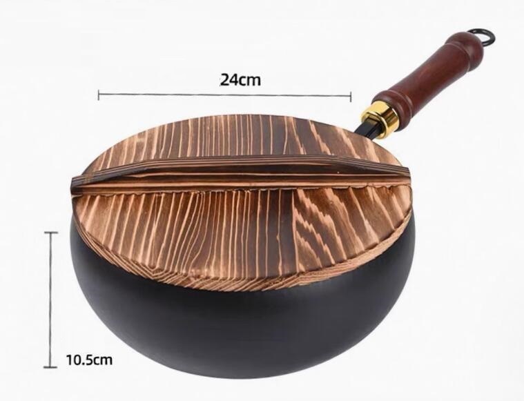 人気品24cm 中華鍋 木製蓋 炒め鍋 手作り鉄鍋 鉄鍋 深型炒め鍋 純鉄ノンスティックフライパン 茹でる 煮る 揚げる 家庭用調理鍋