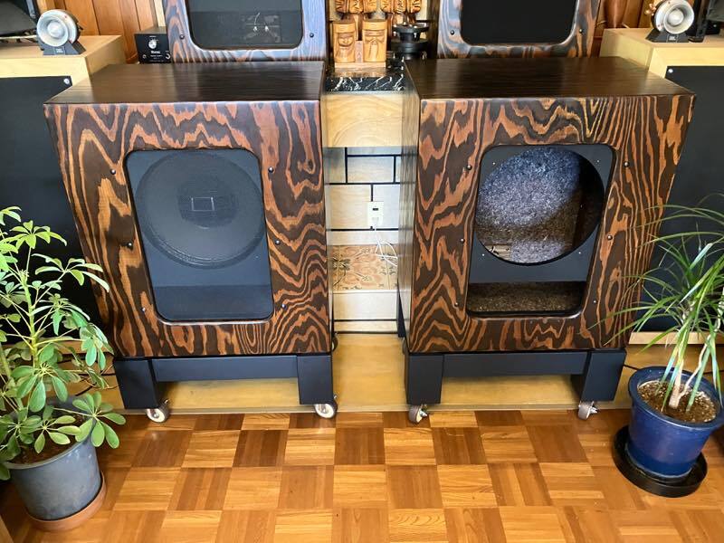 ご覧いただきましてありがとうございます。本製品はALTEC 612 銀箱タイプのエンクロージャーです。 ALTEC 604/605系, 515/416系等に適合します。通常は受注製作の出品につき、ご注文から納品まで約2ヶ月程度お待ちいただいておりますが、本製品は完成品のため落札後(入金確認後)すぐに発送・納品可能です。 ご注意:本製品はオリジナル(純正品)ではありません。ユニットを含まないエンクロージャーのみの販売です。ユニットは別途ご用意ください。商品説明を最後まで全てご確認いただき、ご不明な点は必ず入札前にお問い合わせいただきますようお願い致します。 製品仕様 材質:国産松合板 18mm厚 塗装:オイルステイン&ウレタンニス仕上げ 寸法:高さ 約750× 幅 約650× 奥行き 約450(mm) 容量:約180L 重量:約25kg(1台) 付属品:専用サランネット、端子、内部配線、吸音材、ボルト、ビス類、レンチ、取扱説明書 付属品 専用サランネット、端子、内部配線、吸音材、ボルト、ビス類、レンチ、取扱説明書 ※専用サランネットは黒色、黒色メッシュが選択可能です。(黒色メッシュはユニットが僅かに透けて見えます。) 適合ユニット ALTEC:604/605系, 515/416系 JBL:D130, 130A等 ※ALTEC 601系, 414系, 600B等の12インチユニットを装着する場合は別途専用アダプターが必要です。こちらは[ペア 5,000円]より製作承ります。 配送方法 大型商品につき[アートセッティングデリバリー家財おまかせ便]にて発送致します。送料は別途ご負担をお願い致します。入札前に質問欄より配送先地域を必ずお知らせください。折り返し送料のお見積もりをご案内致します。手渡し(直接引き取り等)には対応しておりませんのでご了承ください。梱包、家財便の予約手配等ありますので、ご入金確認後発送までに3~7日程度かかる場合がございます。 |