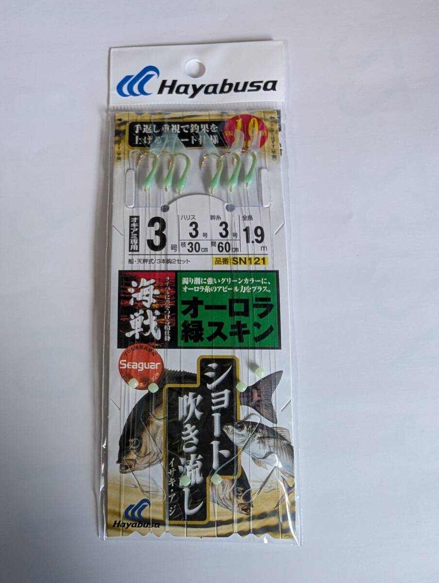 【新品!!】ハヤブサ 海戦 オーロラ緑スキン 3号3本針 ハリス3号 幹糸3 全長1.9 SN121 4993722620679