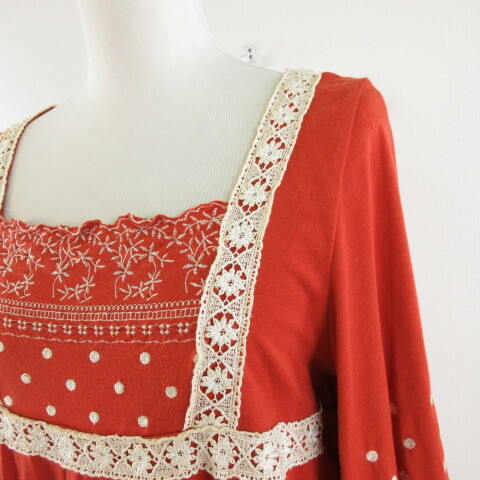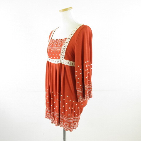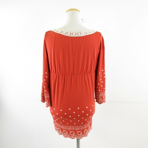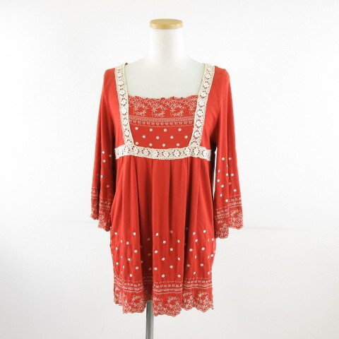 エニィスィス エニシス anySiS カットソー チュニック 七分袖 刺繍 赤 2 *A347 レディース