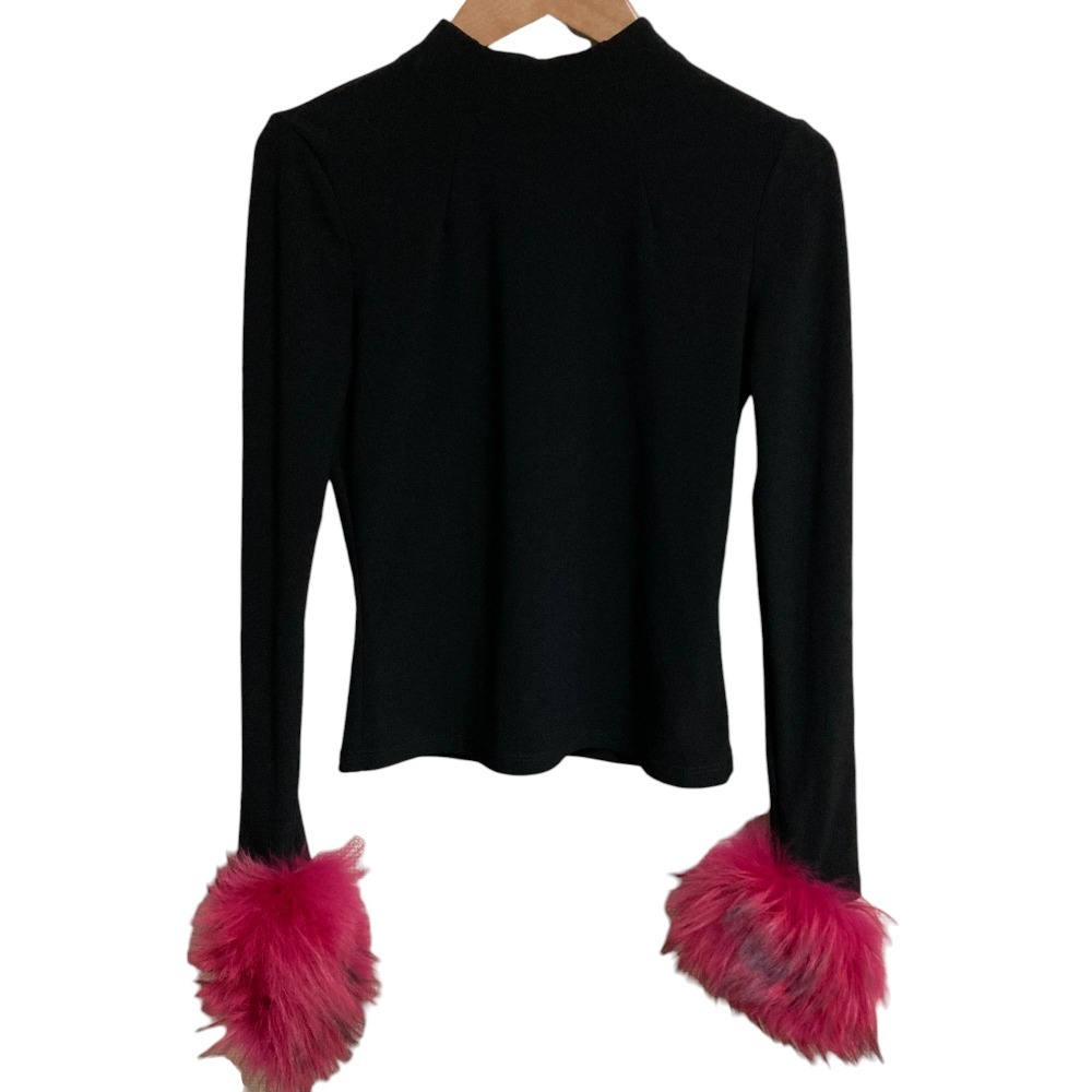 美品 alice + olivia アリスオリビア ストレッチ 長袖 袖ファーカットソー XSサイズ ブラック