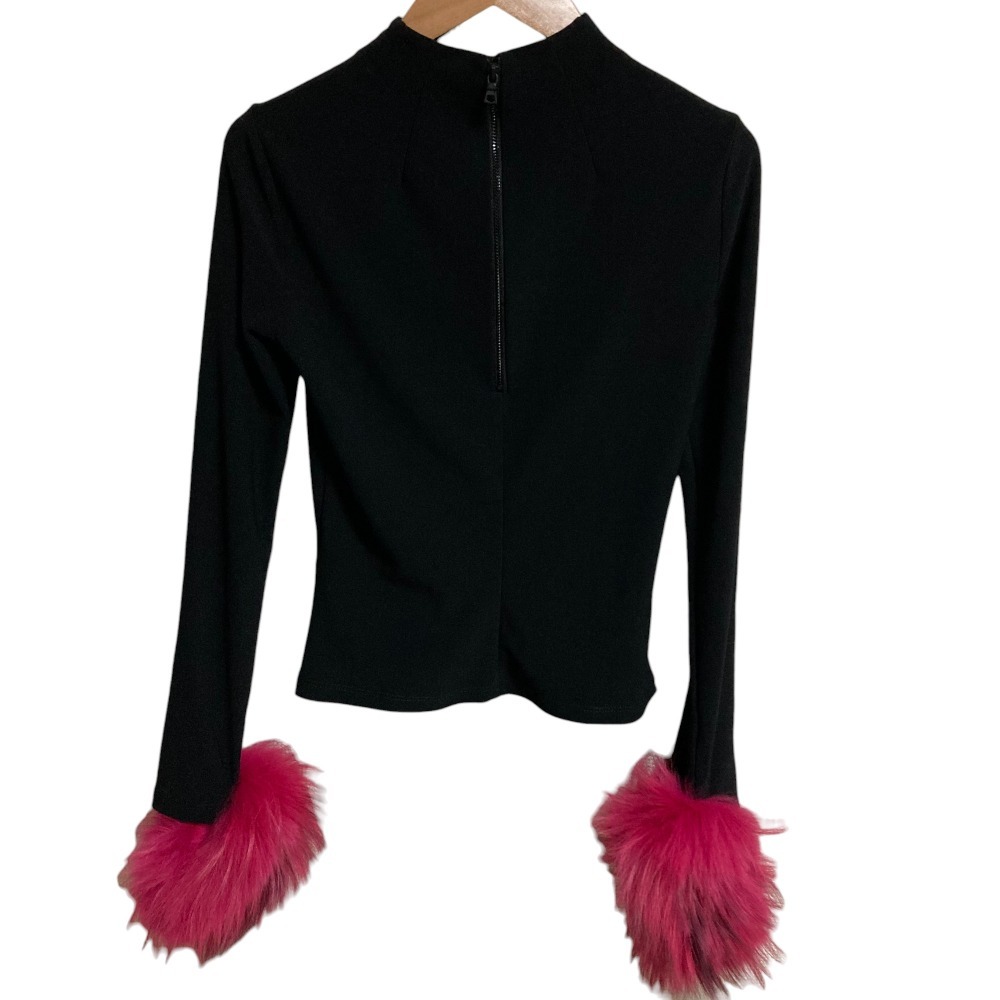 商品名:alice + olivia アリスオリビア ストレッチ 長袖 袖ファーカットソー XSサイズ ブラック
