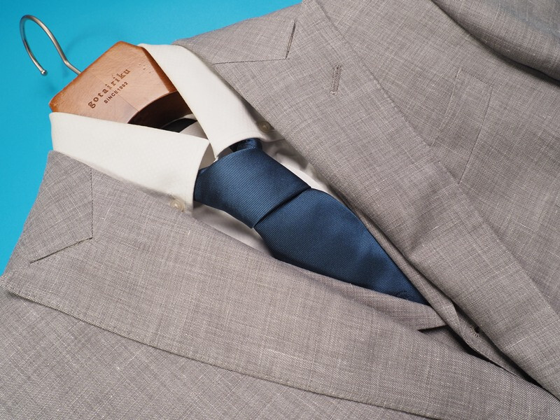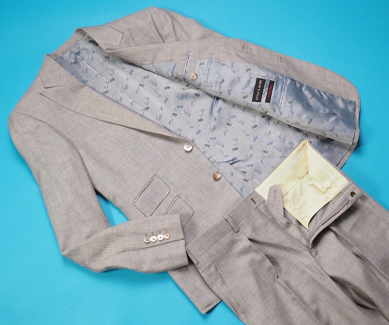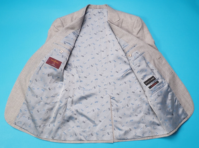 伊勢丹などの百貨店展開の『STYLE&MORE』ブランドのオーダースーツです。キュプラジャガード裏地、お台場仕立て、シェル釦、本切羽、AMFステッチ、毛芯を用いた縫製など、既製品のブランドスーツではここまで仕立てにこだわったスーツは手に入りません。