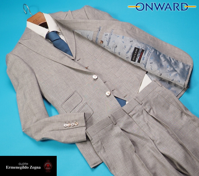 新品27.4万円 オンワード樫山 STYLE&MORE 日本製『Ermenegildo Zegna ゼニア TROFEO 伊製生地』ウール スリーピーススーツA98(A5)灰 SM7329