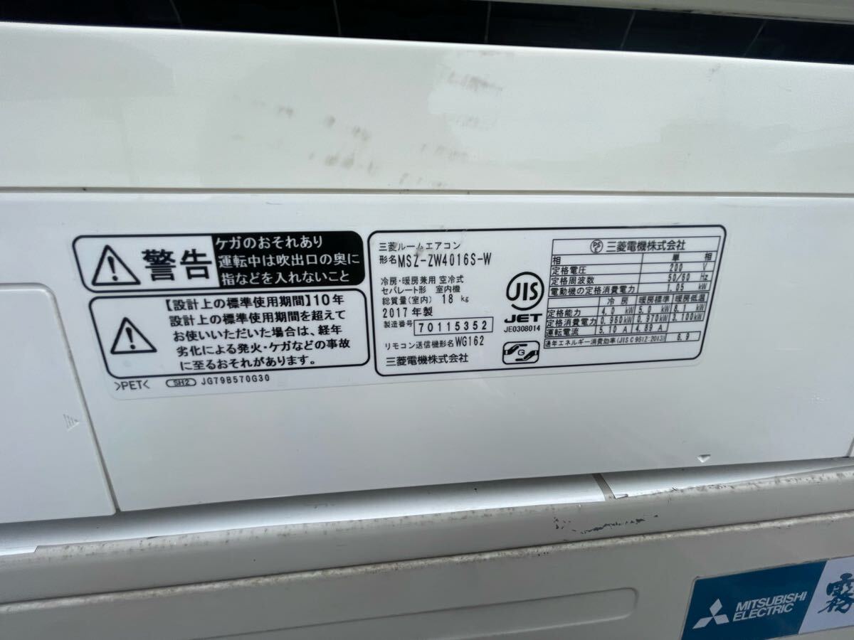 三菱電機 MITSUBISHI 霧ヶ峰 エアコン おもに14畳用 4kW フィルター自動お掃除 空清 MSZ-ZW4016S-W 2017年製