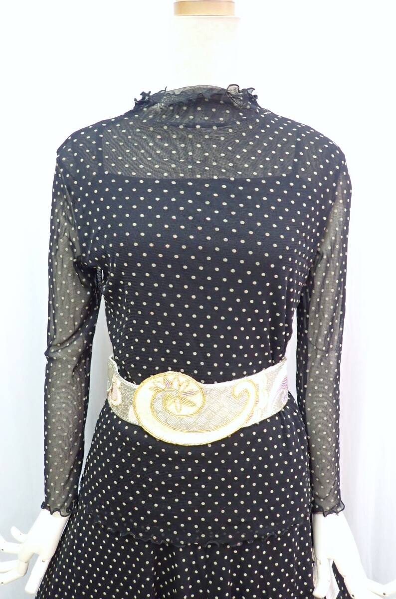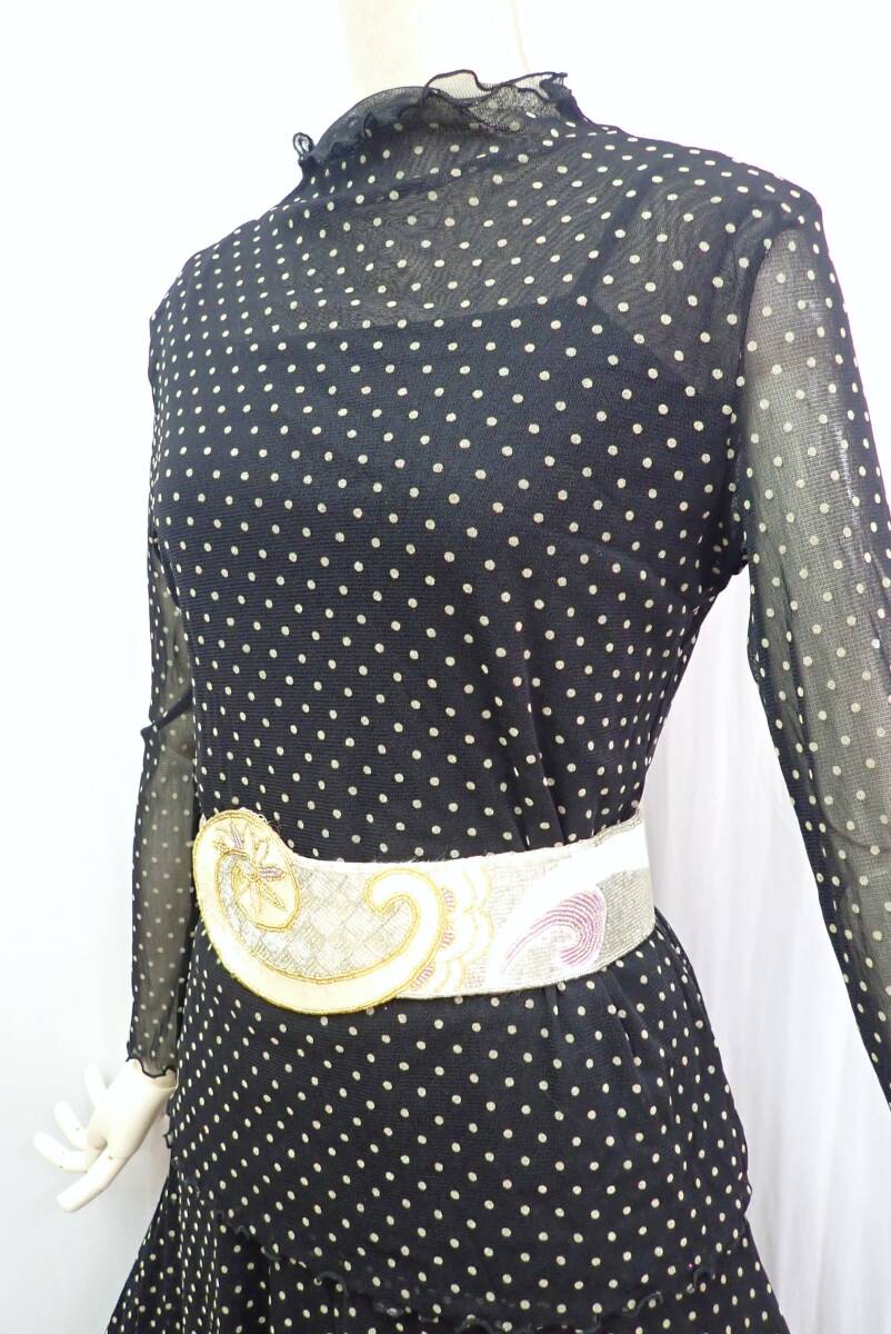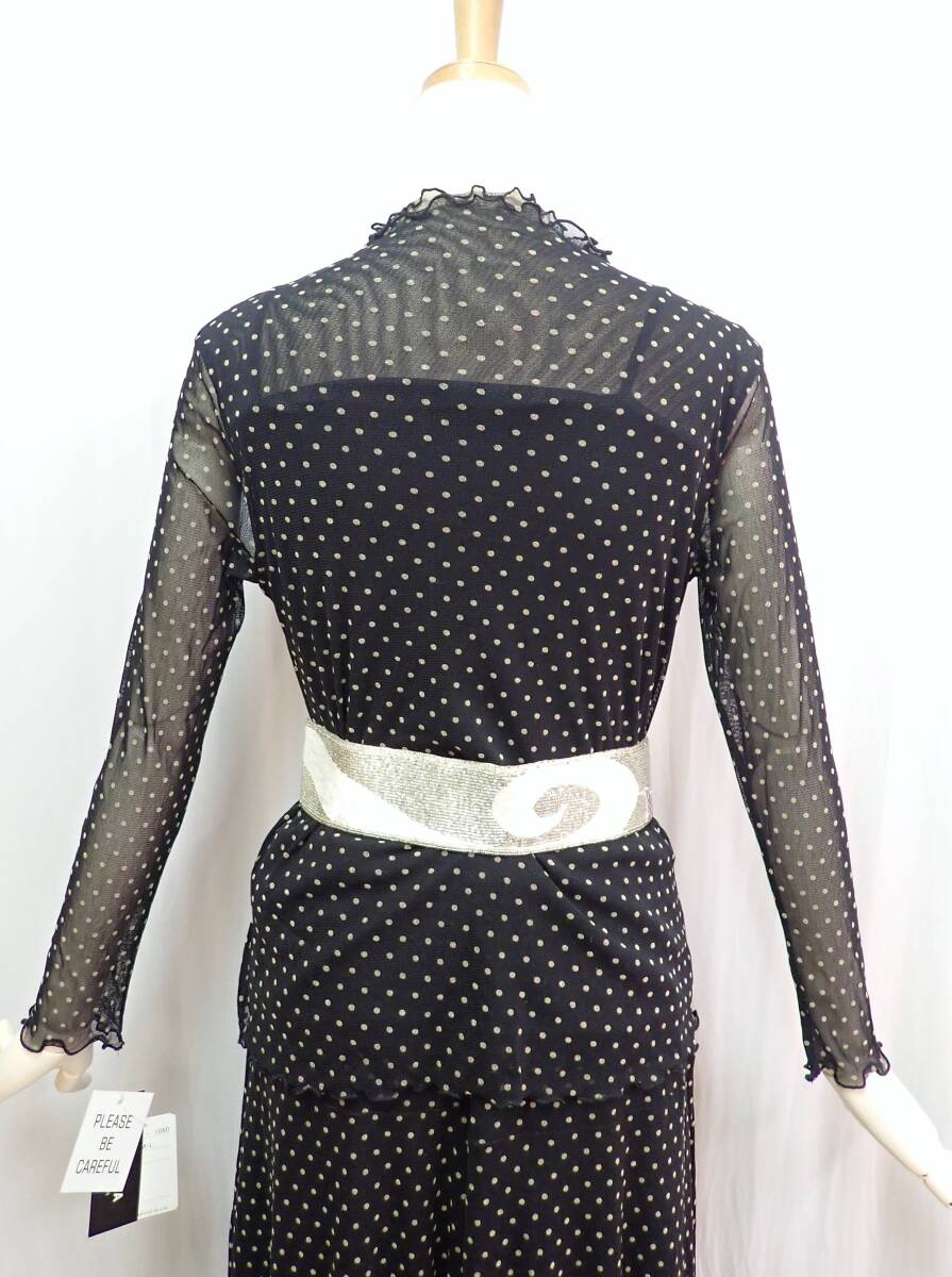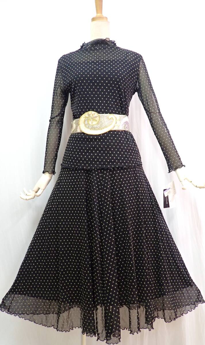 ③25G16★新品タグ付き★ML★黒/ベージュ/ドット/水玉/セットアップ/スタンダードドレス☆社交ダンス/モダン/パーティー