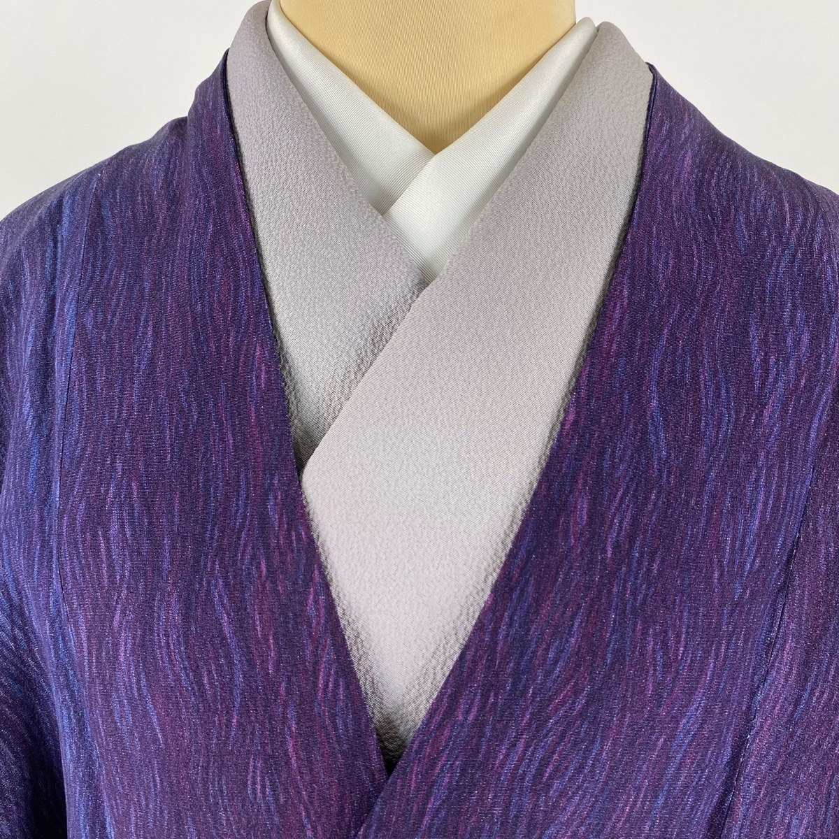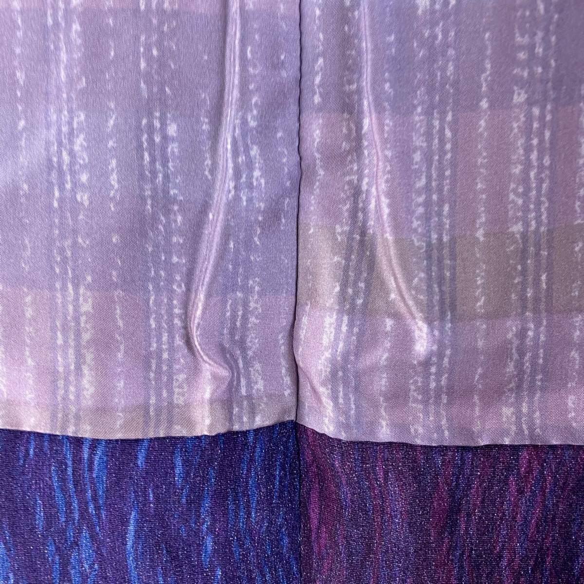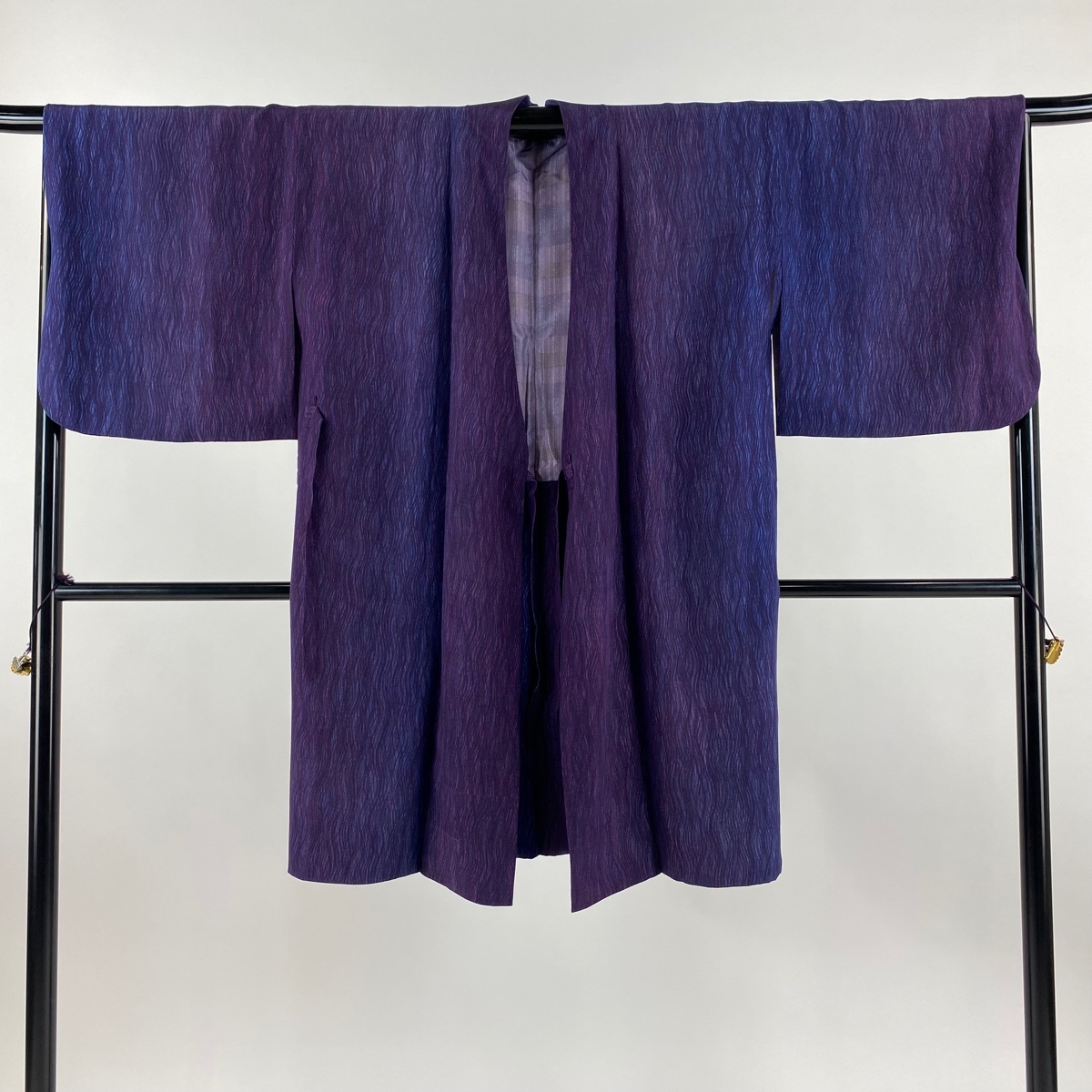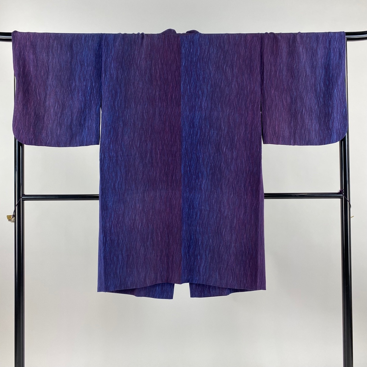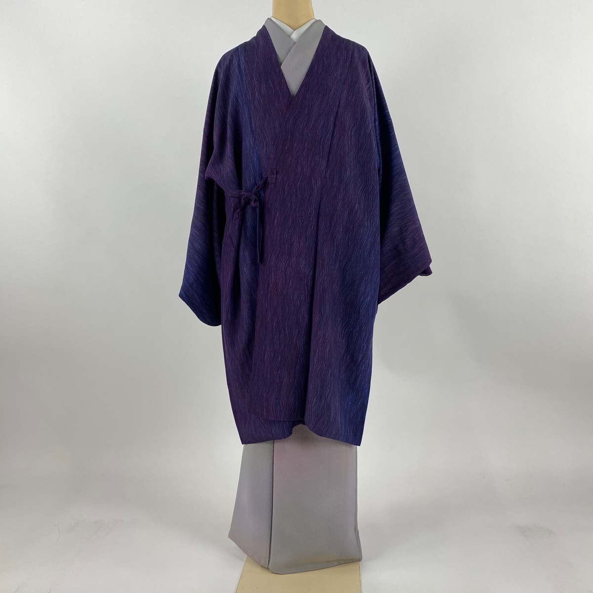 | 道中着 逸品 和装コート よろけ縞 青紫 身丈103 裄丈66.5 M 正絹 【中古】 |