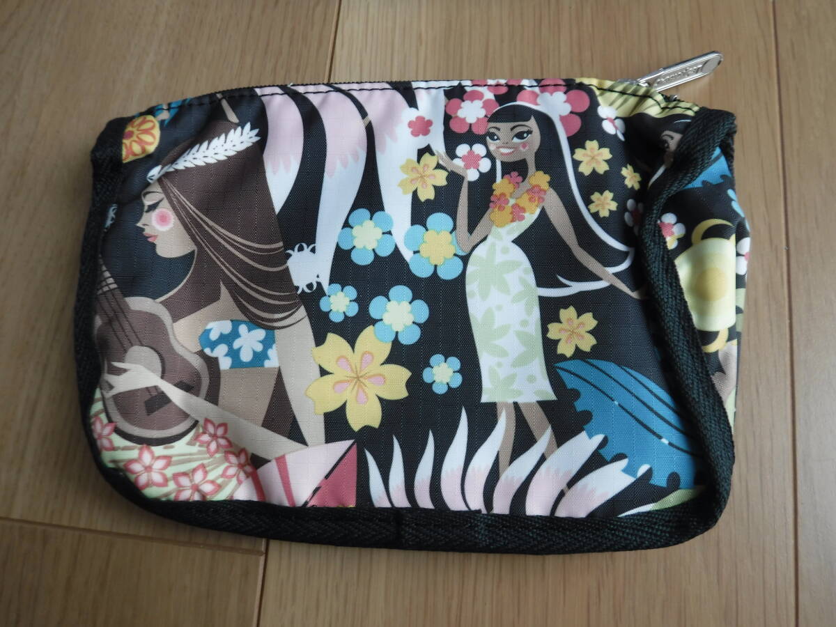 税不要特価 新品!LESPORTSAC レスポートサック ハワイ限定 ワヒネフラ ポケット付き マチ有 ポーチ♪②