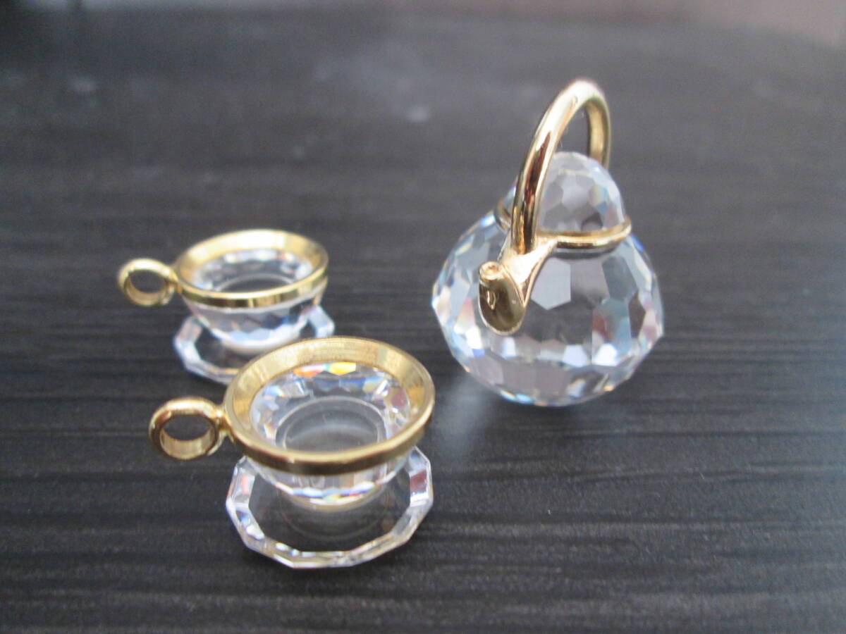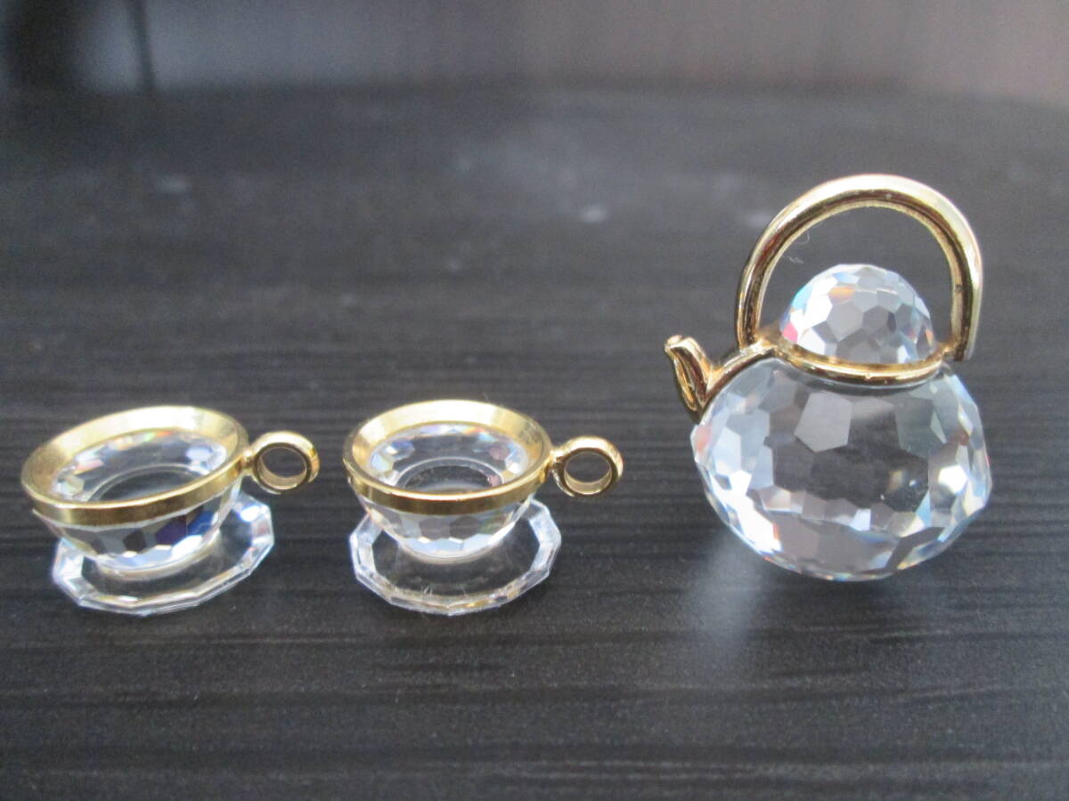 ☆2 SWAROVSKI スワロフスキー ミニチュアコレクション クリスタルメモリーズティーセット3点で 美品 箱無し
