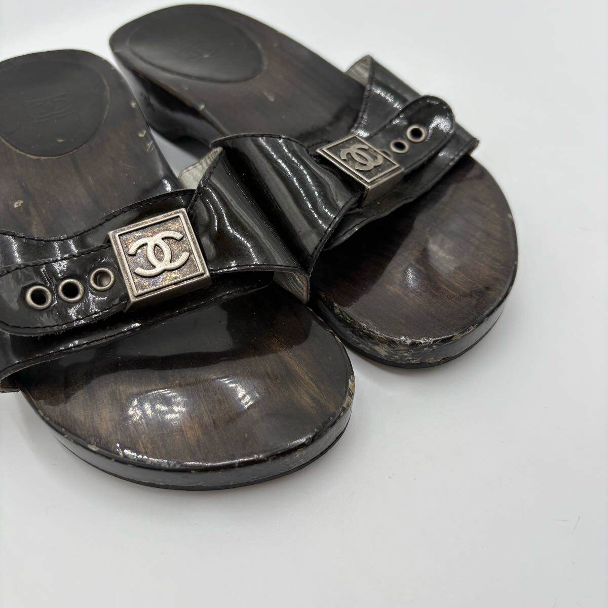 G ■ 名作!! ココマーク入り '至高の逸品' CHANEL シャネル ウッド サンダル / ミュール EU34 21.5cm レディース 高級婦人靴 シューズ