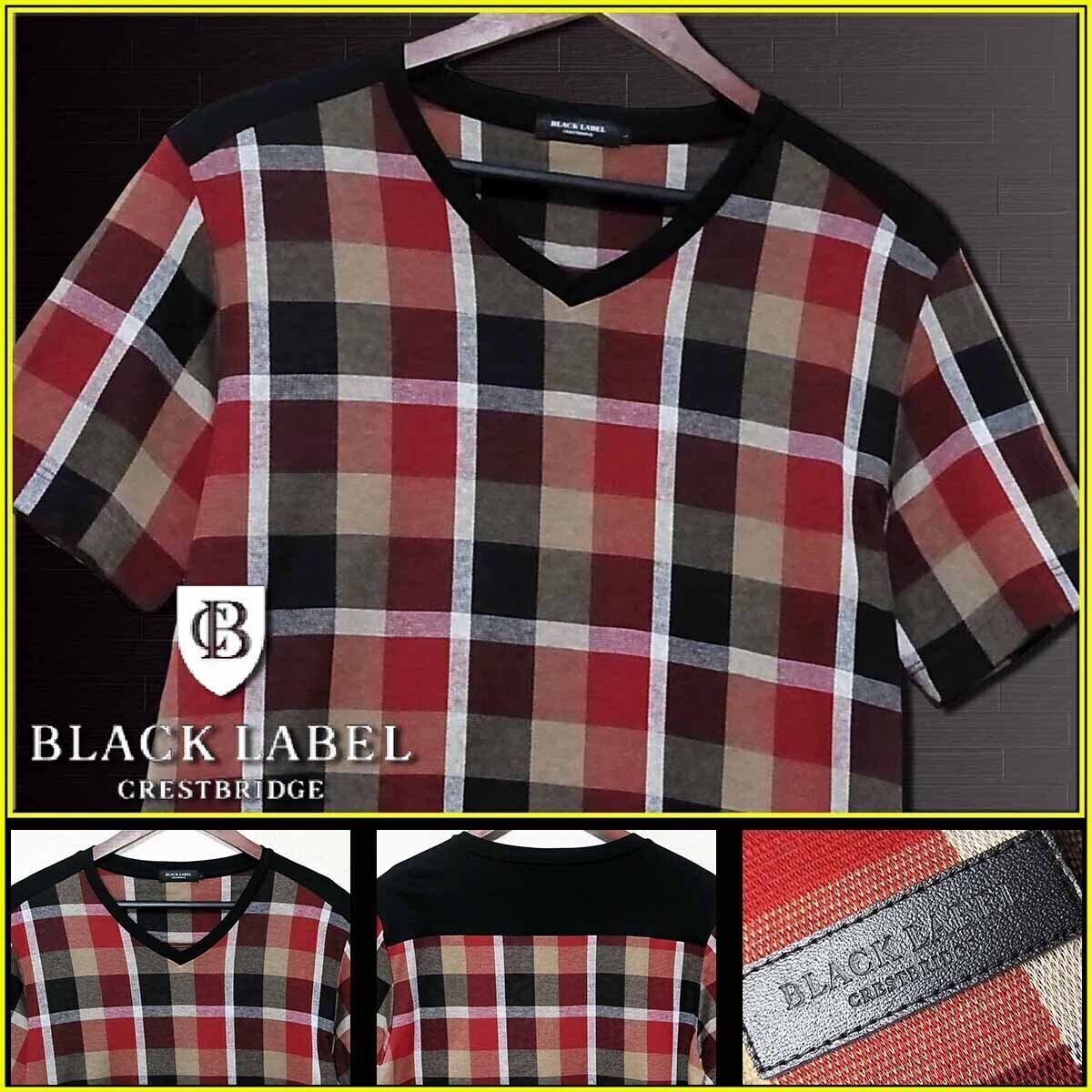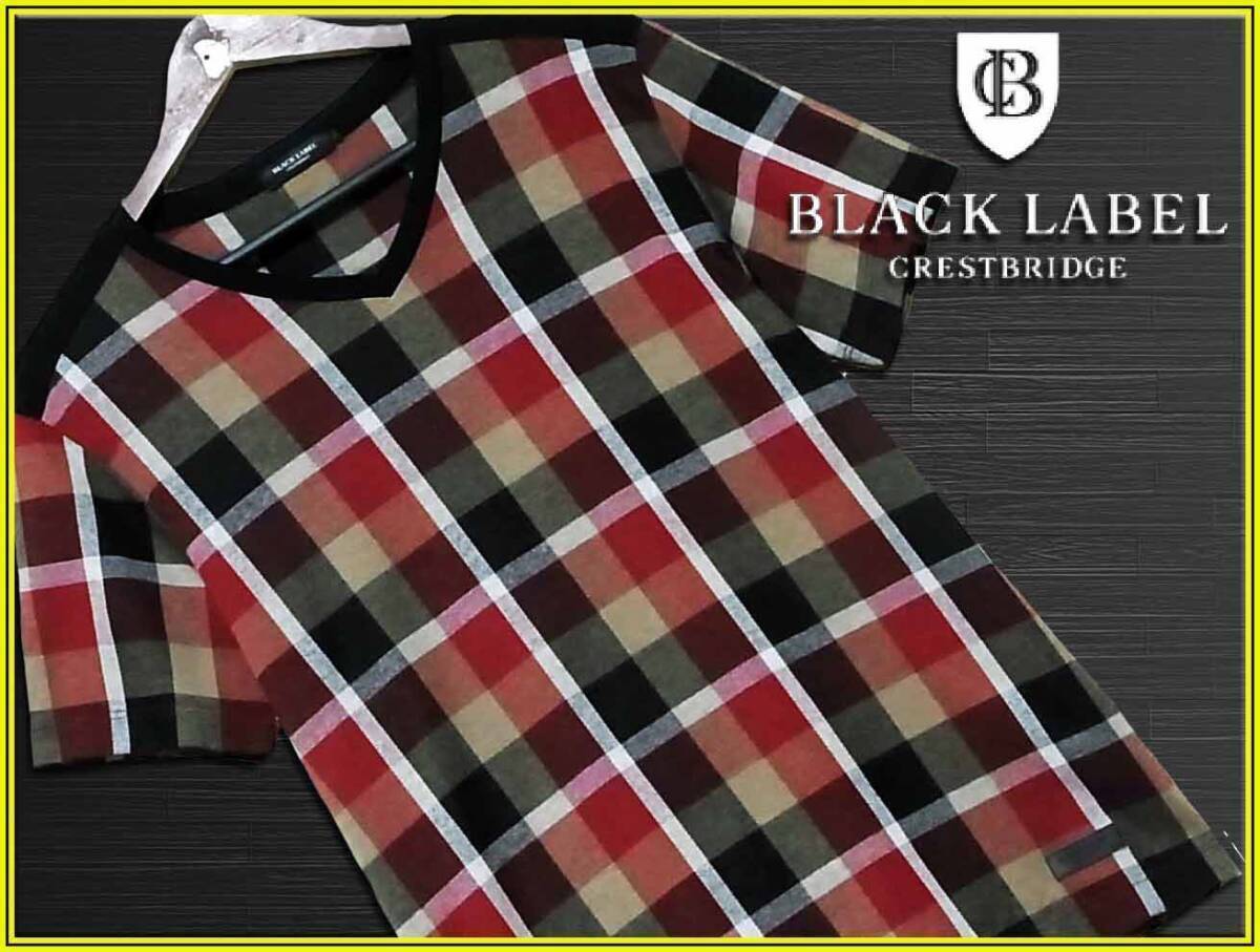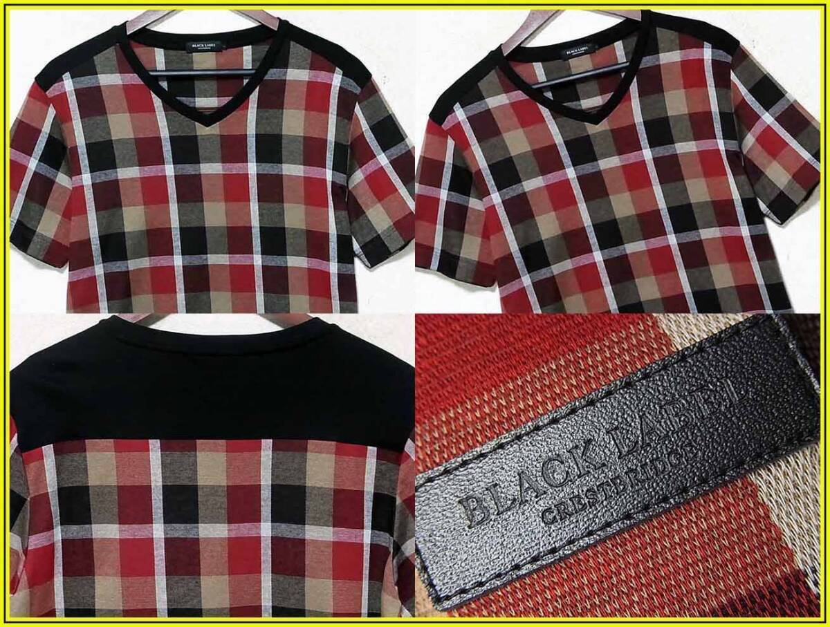着用1回のみ!大人気L!LIMITED!肩ブラック×CBチェック Tシャツ▼ブラックレーベルクレストブリッジ CRESTBRIDGE バーバリー