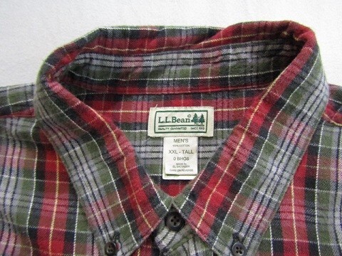 L.L.Bean エルエルビーン チェック フランネル ボタンダウンシャツ レッド カーキ XXLサイズ【中古】【メンズ】【大きいサイズ】