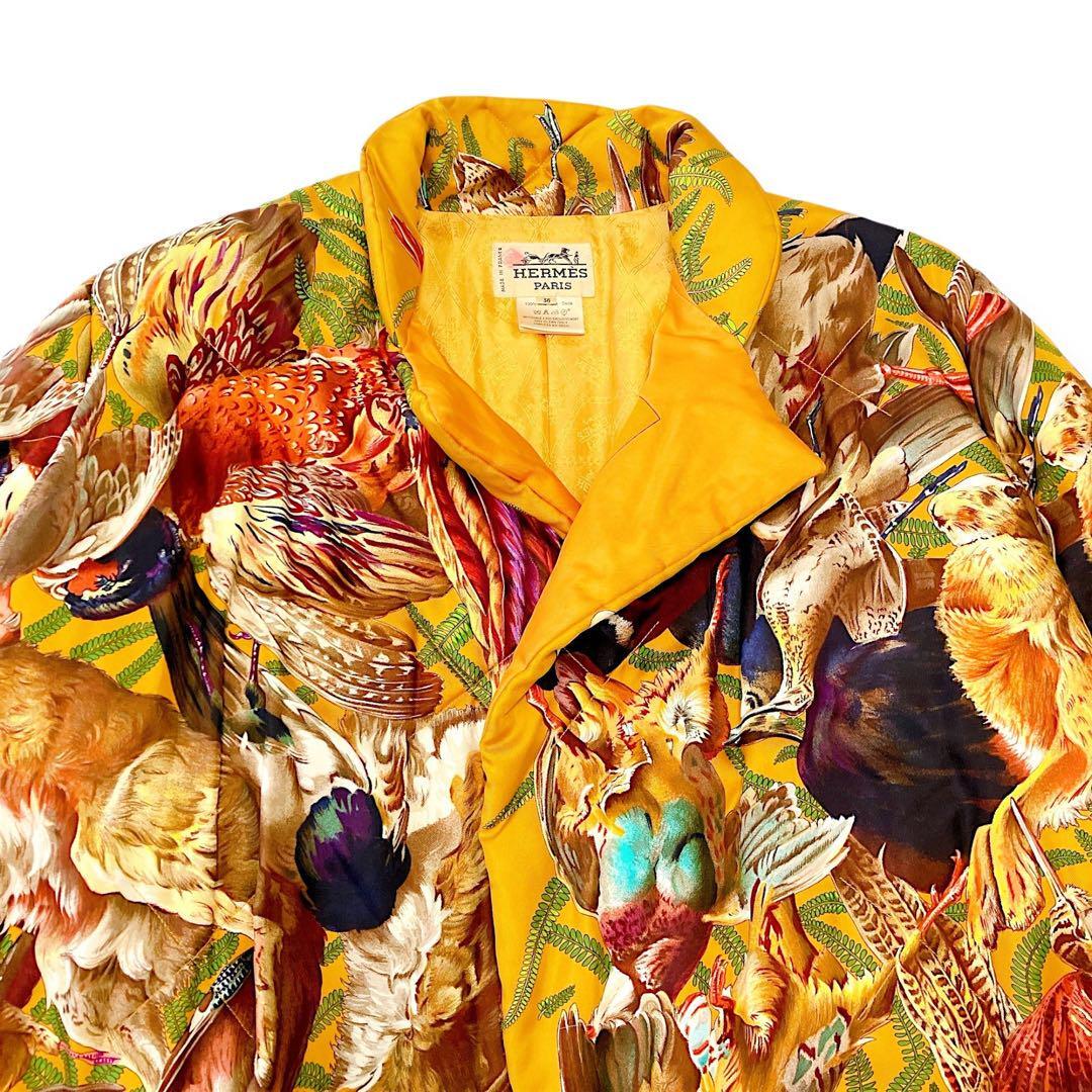 HERMES】極稀少 シルク100% カレ柄 中綿入り ケープ コート 36 H DE LINARES 狩猟柄 エルメス