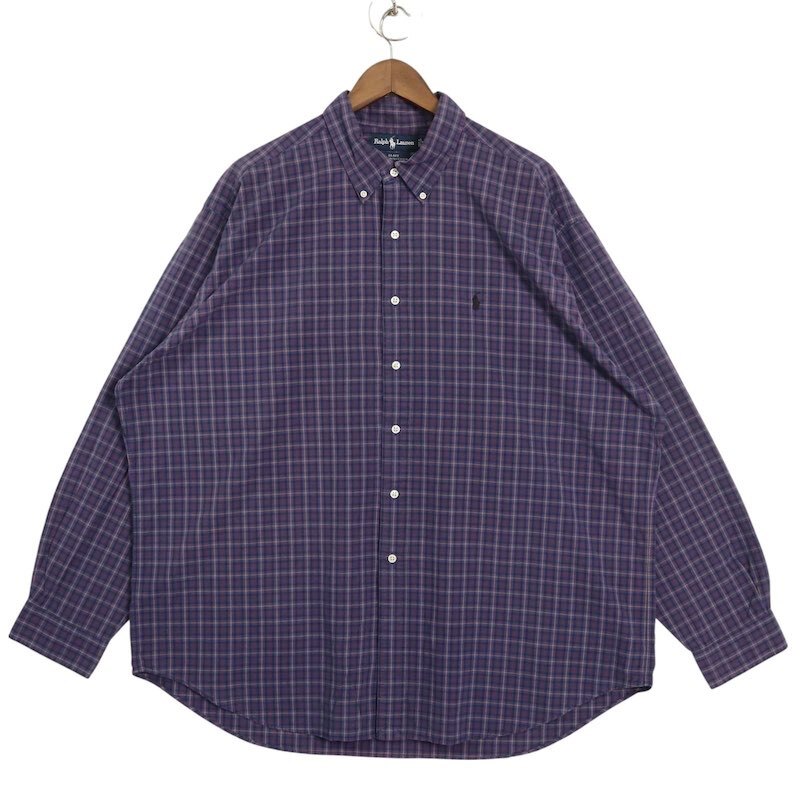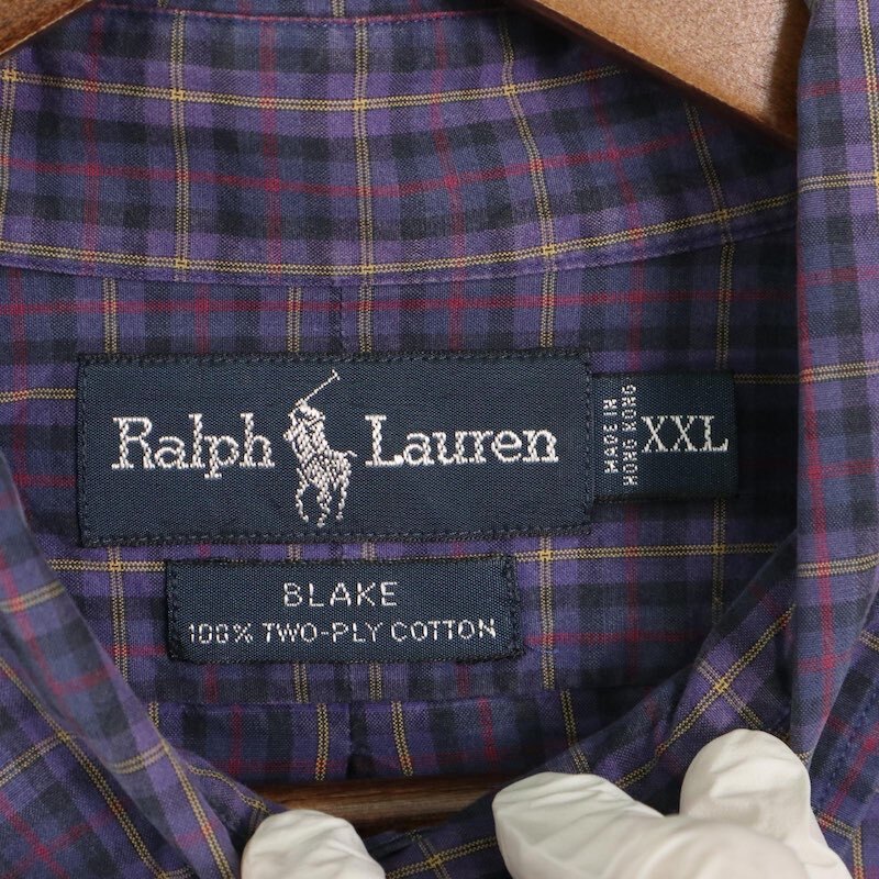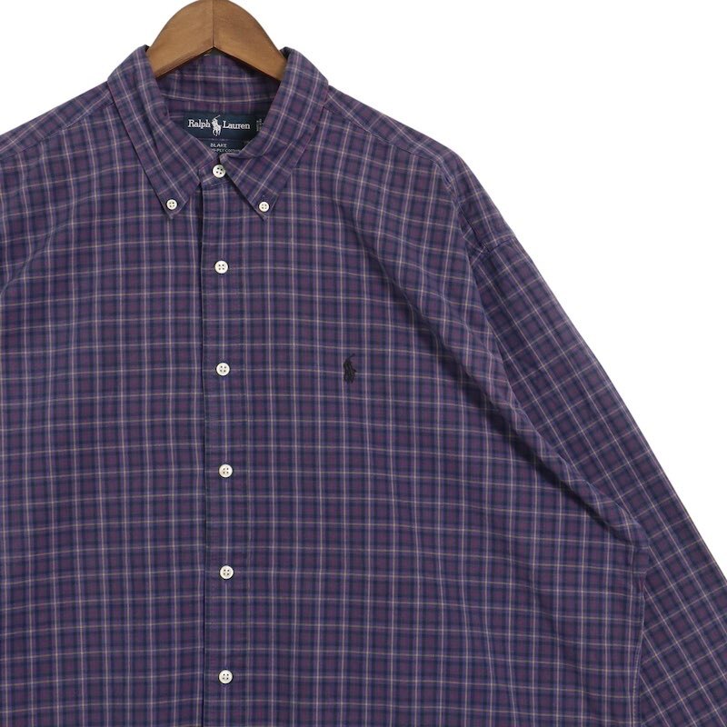 90's Ralph Lauren ラルフローレン 長袖ボタンダウンシャツ BLAKE チェック柄 メンズUS-XXL パープル系 オールド hsc-0667n
