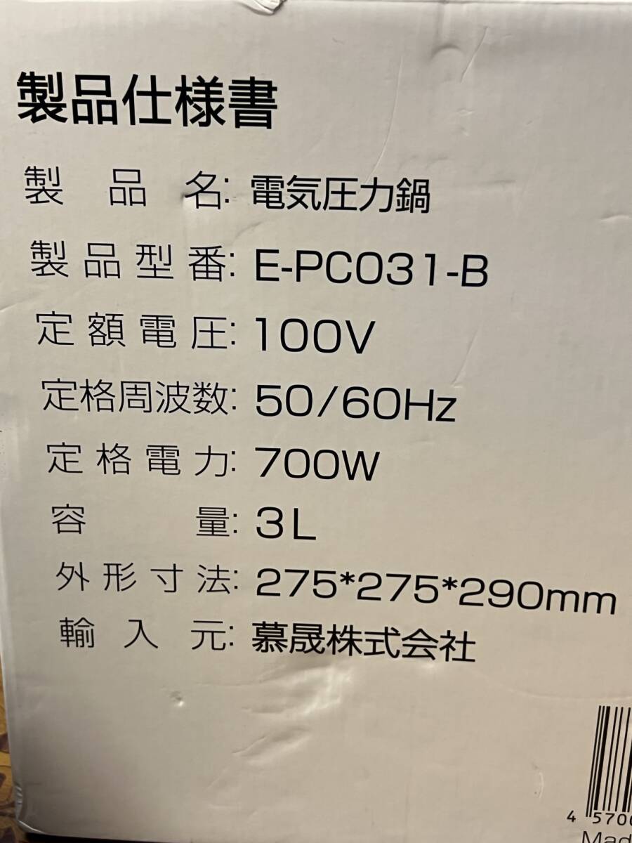 中古 AONCIA 電気圧力鍋 E-PC031-B 1台10役 お鍋 調理器具 キッチン用品 料理 ジャー 容量3L 700W 操作簡単 時短 省エネ
