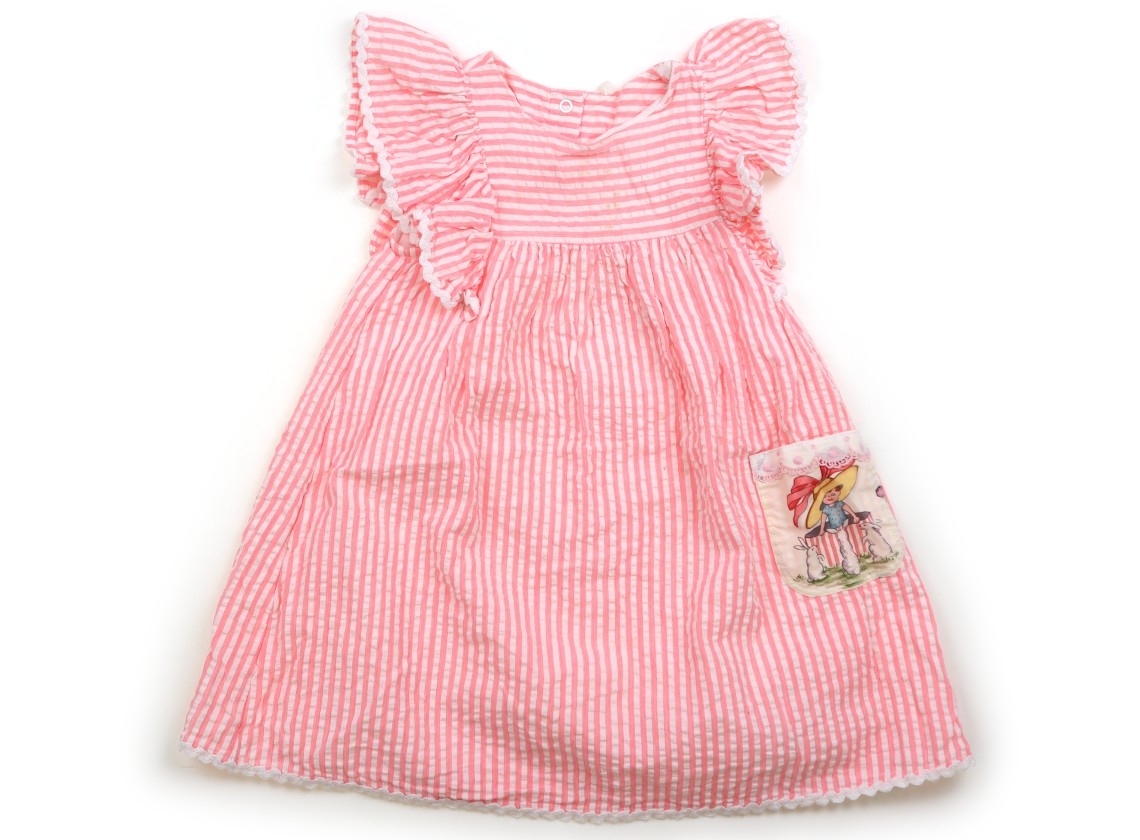 綿100%。実際のサイズ表記は、98cm。後ろボタン開き。裏地付き。薄いシミが複数見られ、洗いざらし感があります。