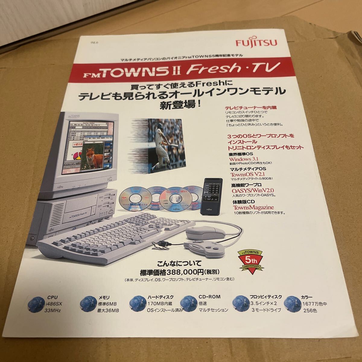 貴重:当時物(37):約30年前のカタログ FM TOWNS2 Fresh・TV 送料無料 タウンズ 富士通 状態は年数の割にはキレイです FMTOWNS