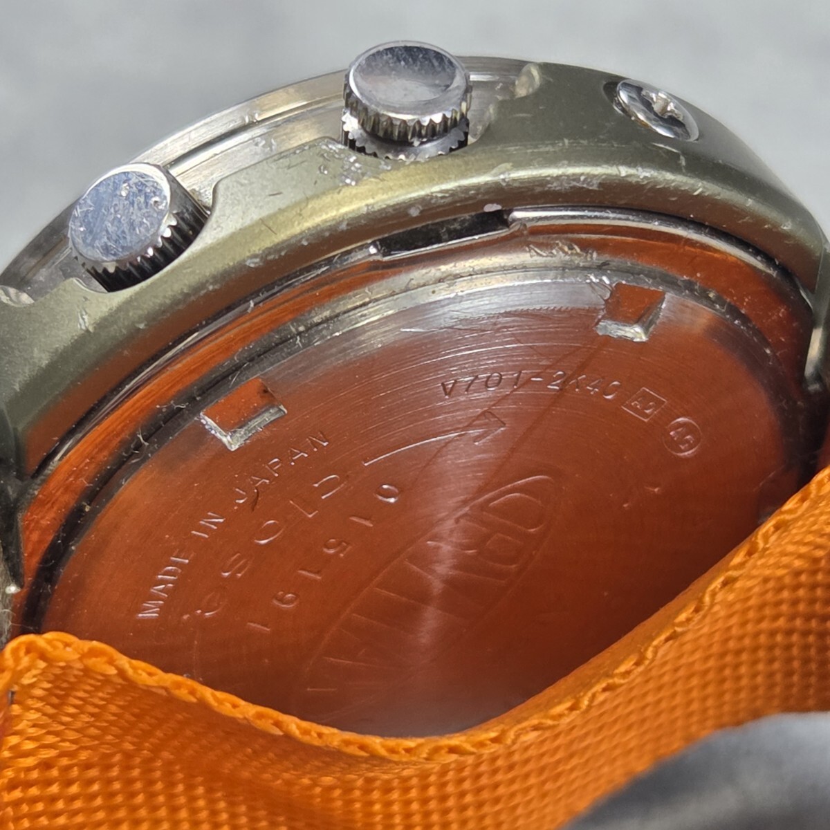 ダイバーウォッチの雰囲気を持ち、4時のリューズを回すとインナーベゼルが回転します。