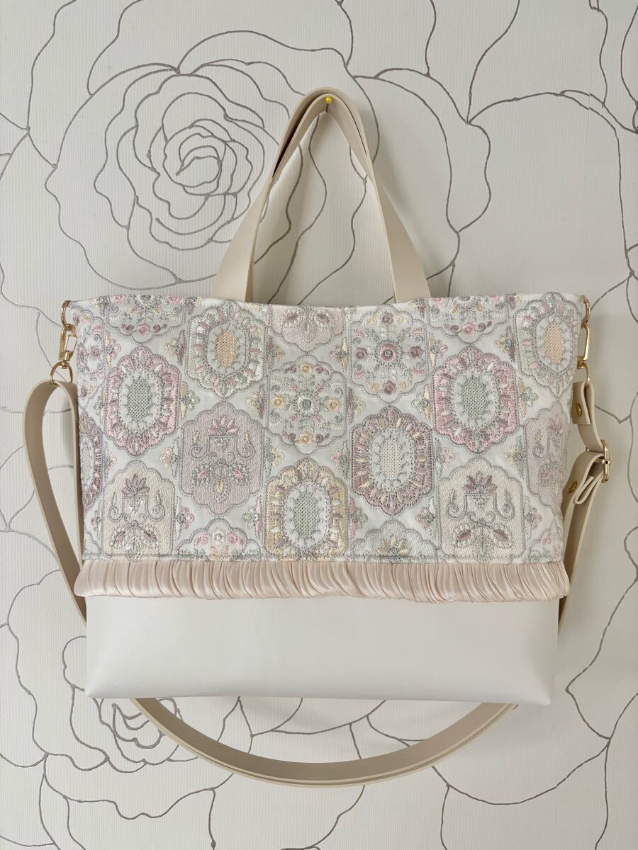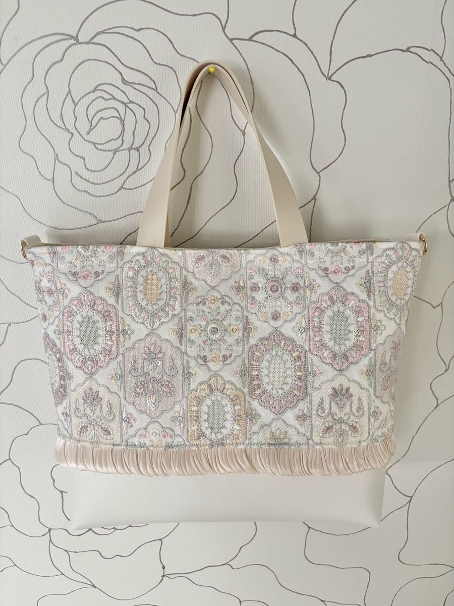 オール刺繍のインド刺繍生地と合皮を合わせて高級感のあるバッグにお仕立てしています(о´∀`о)