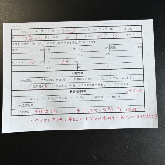 ・その他(ウエスト内側の裏地がわずかに表側に見えている状態です)