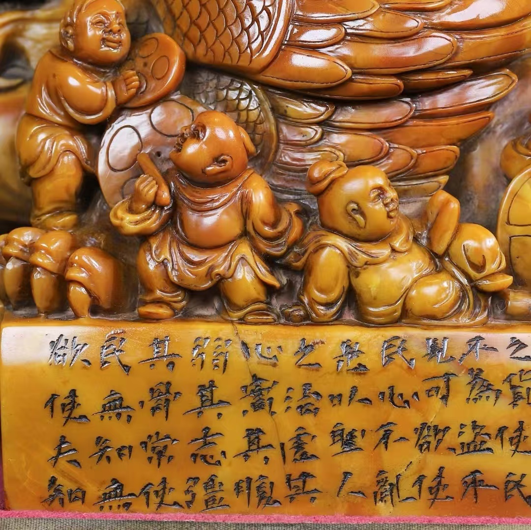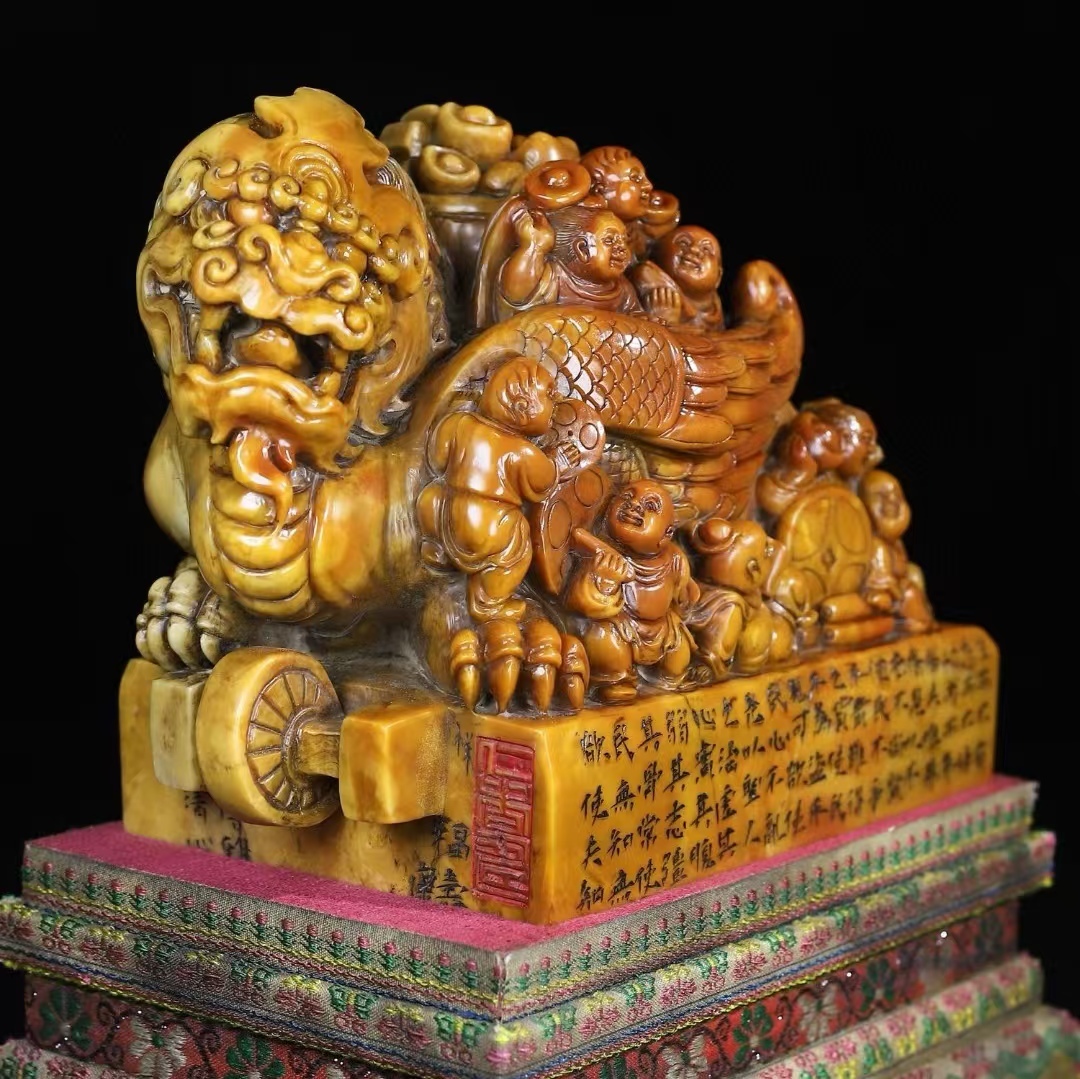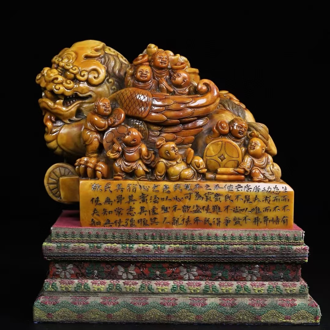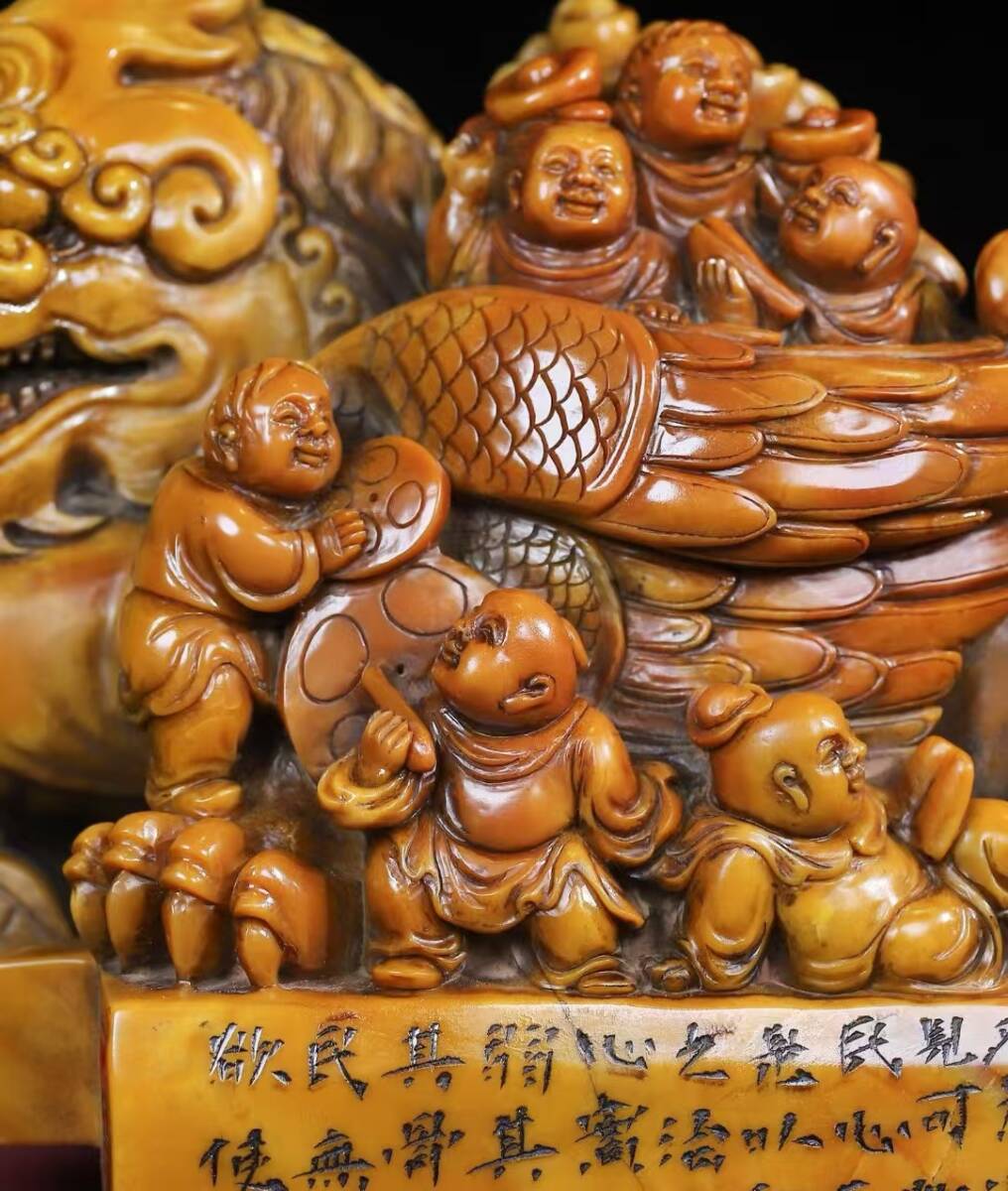 印鑒 寿山石 秘藏 清代【鳳雛麟子図 山水印】 印章 古印材 印鑑の方 老玉 唐物 古玉彫 天然石 稀少珍品 古美術 古賞物 古置物 旧蔵 7.15