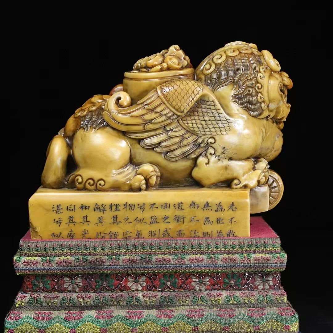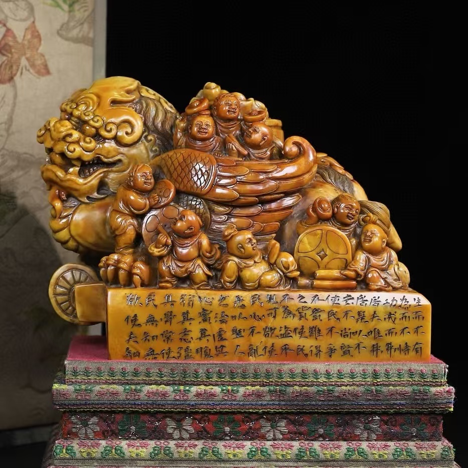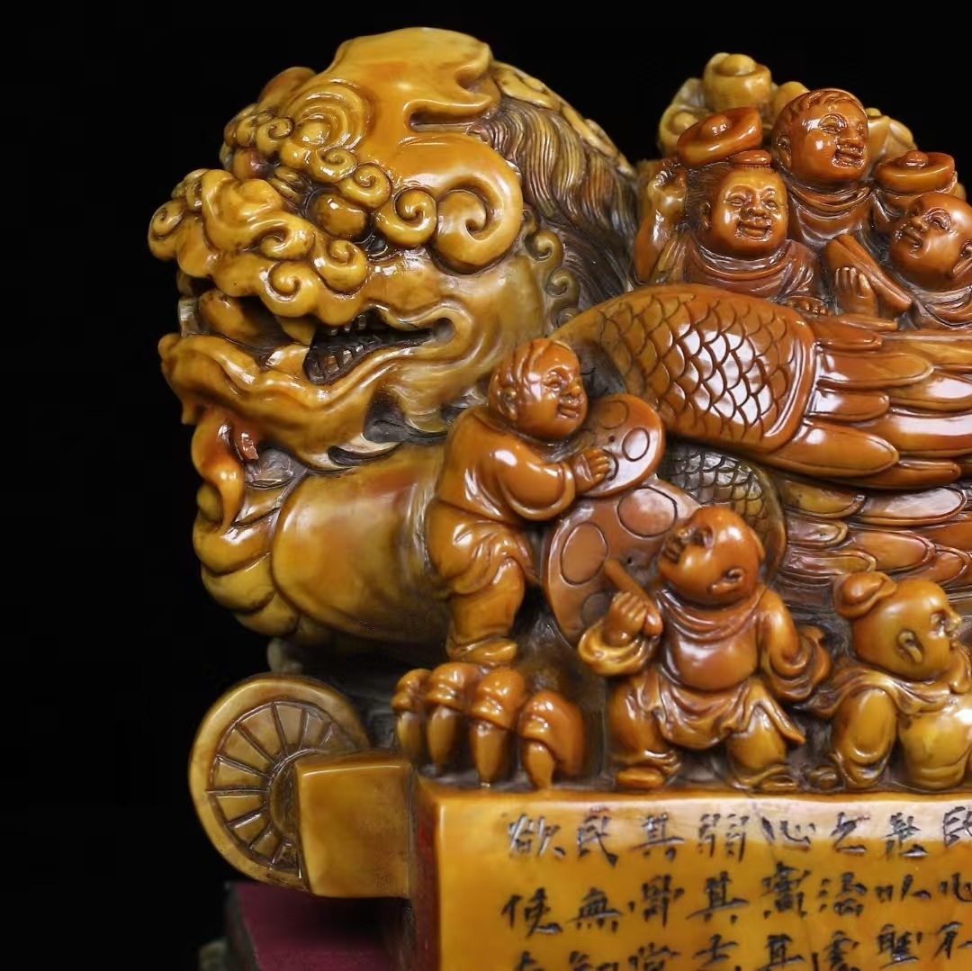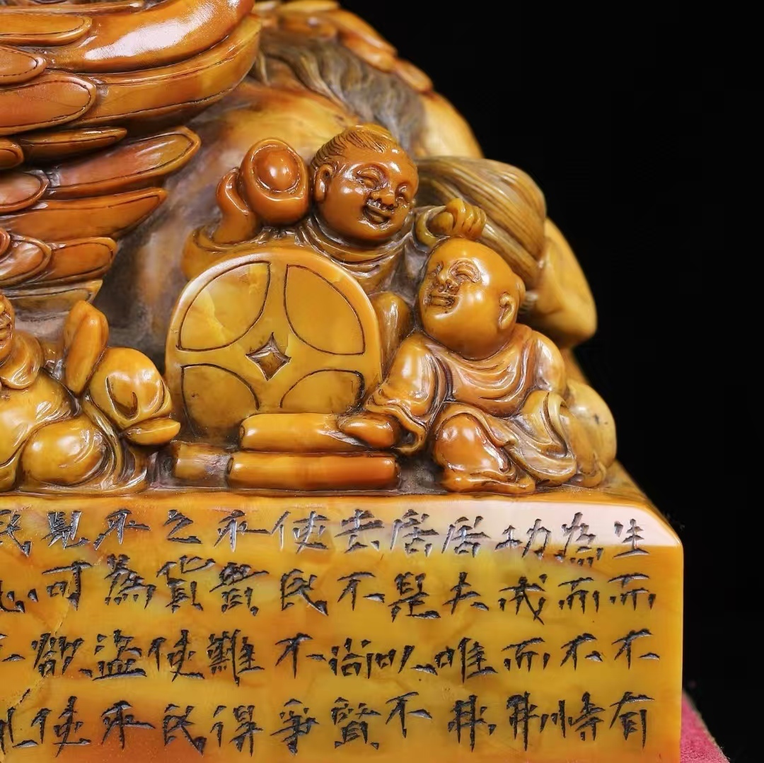 印鑒 寿山石 秘藏 清代【鳳雛麟子図 山水印】 印章 古印材 印鑑の方 老玉 唐物 古玉彫 天然石 稀少珍品 古美術 古賞物 古置物 旧蔵 7.15