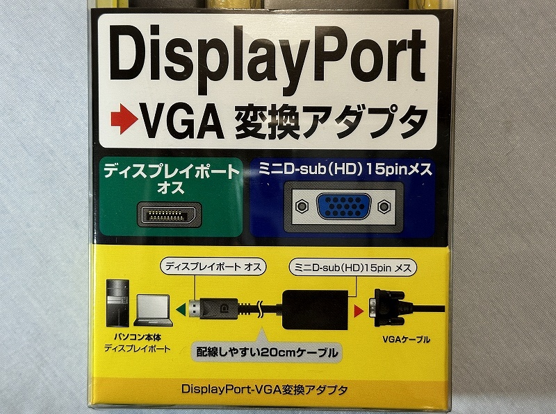 DisplayPort搭載のパソコンからディスプレイモニターのVGAインターフェースに