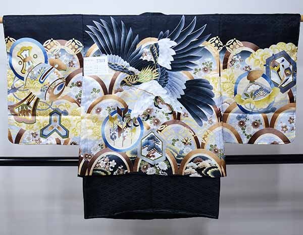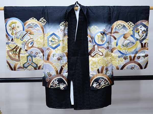 サイズ | ■羽織丈約59cm 裄丈約53cm 袖丈約48cm 着物丈約73cm 適合身長95cm~118cm ※着丈=背中首のゴリゴリ部分から、足くるぶしまでの長さ ※裄丈=腕を斜め45度下げた状態で、背中首ゴリゴリ部分から、肩上を通して、手くるぶしまでの長さ |