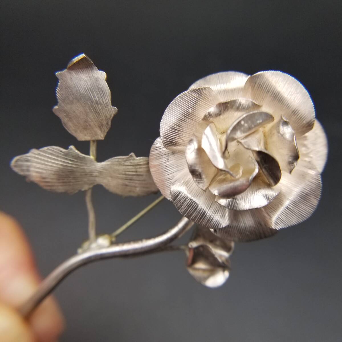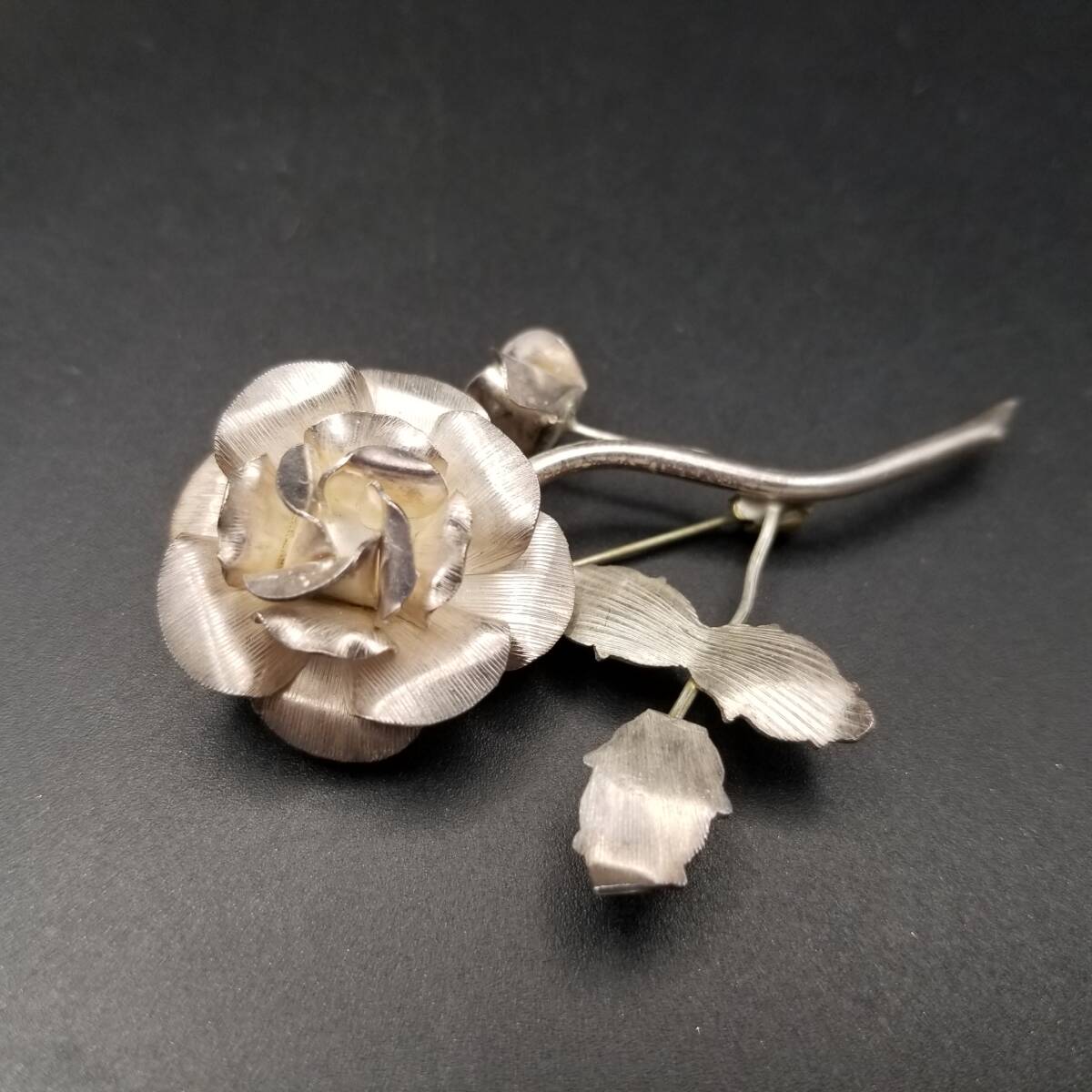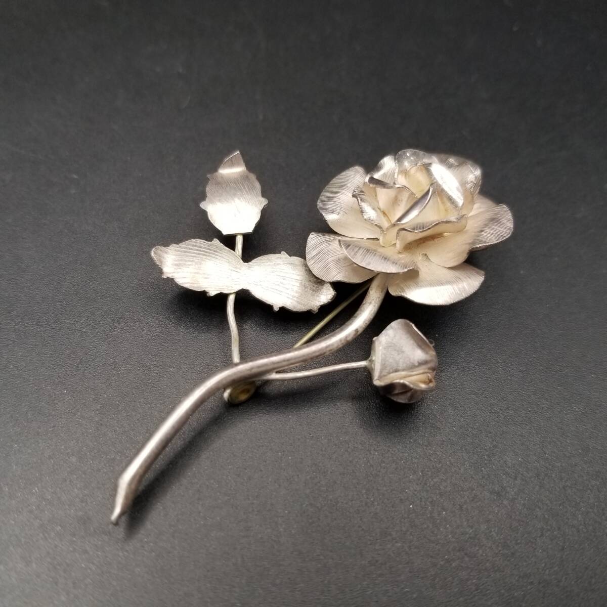 メキシコ 925 シルバー 大きな薔薇の花 立体彫刻 ヴィンテージ フラワー ブローチ 銀 大ぶり 存在感 レトロ 精巧な作り Taxco タスコ R16-H