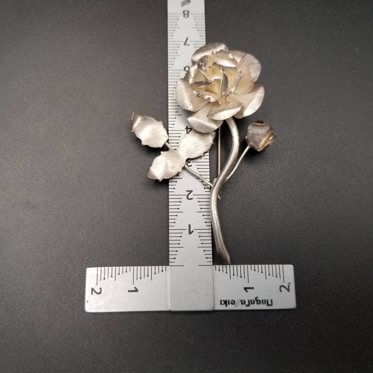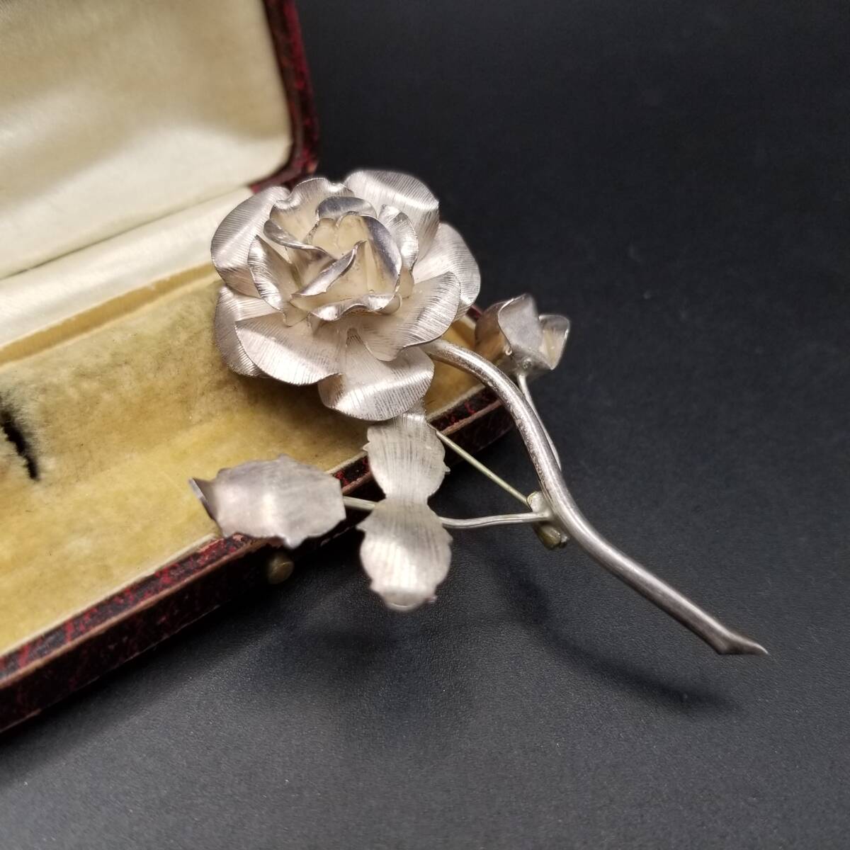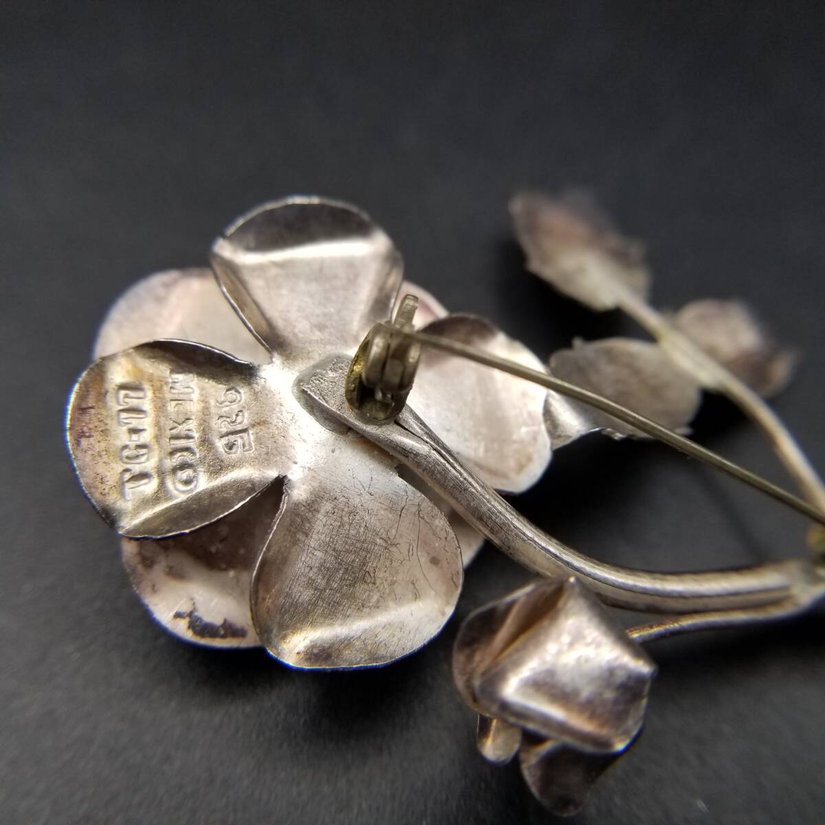 メキシコ 925 シルバー 大きな薔薇の花 立体彫刻 ヴィンテージ フラワー ブローチ 銀 大ぶり 存在感 レトロ 精巧な作り Taxco タスコ R16-H