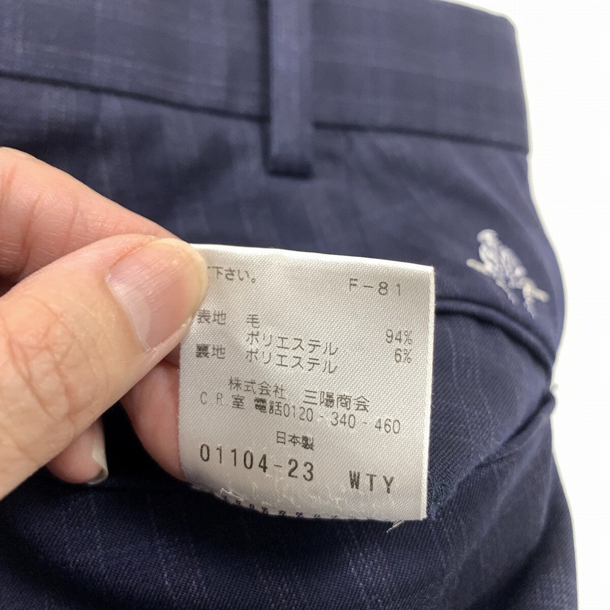 Paul Stuart ポールスチュアート スラックス パンツ ウール チェック 紺 ネイビー 94 YC696