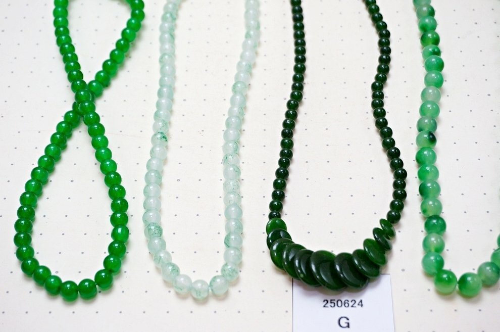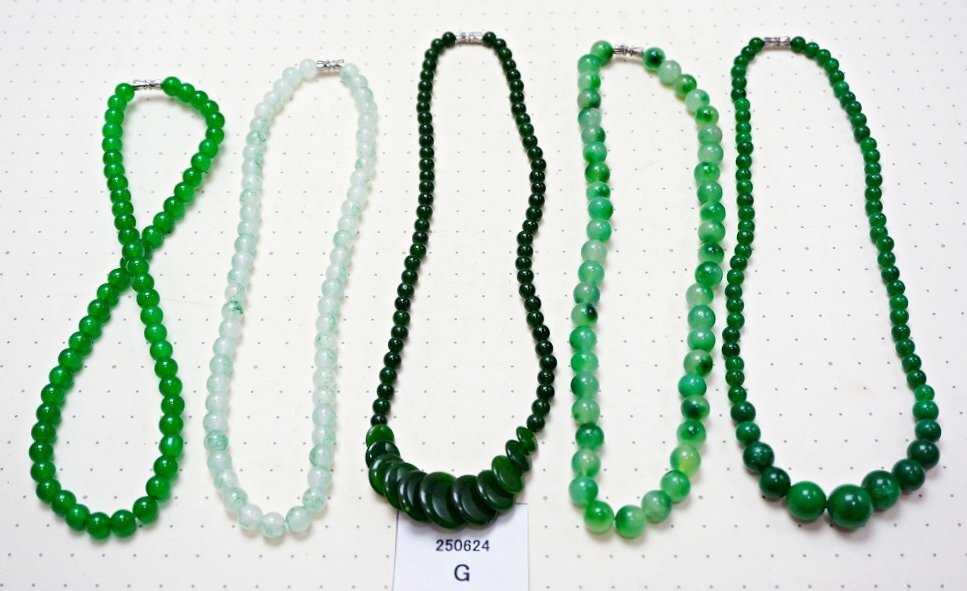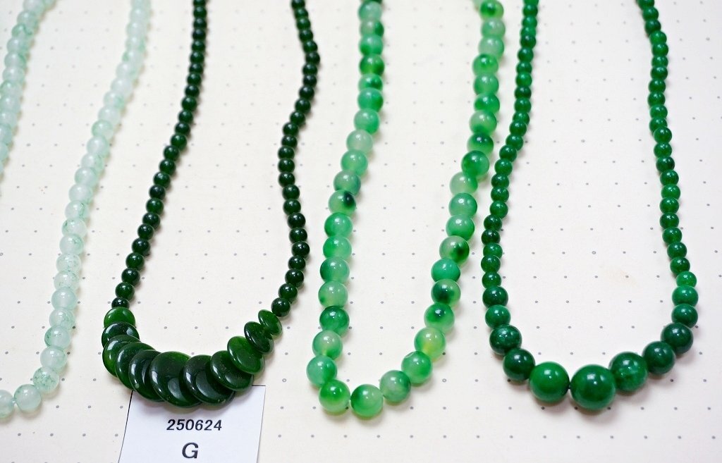 ヒスイ メノウ等 緑石系 天然石ネックレス ペンダント まとめて5点セット ヒスイ メノウ等の緑石系 天然石のネックレス ペンダント 5点セットです。 とても丁寧に研磨されており、艶、色味ともに非常に美しいものです。 写真がお譲りする商品の全てになります。 材質: ヒスイ メノウ等の緑石系の天然石 サイズ: ネックレスが置かれている下地の模様の点の間隔が1cmですので、参考にしてください。 個数: 5点 当店の他の出品商品との同梱料は下記のとおり落札1点につき200円です。 |