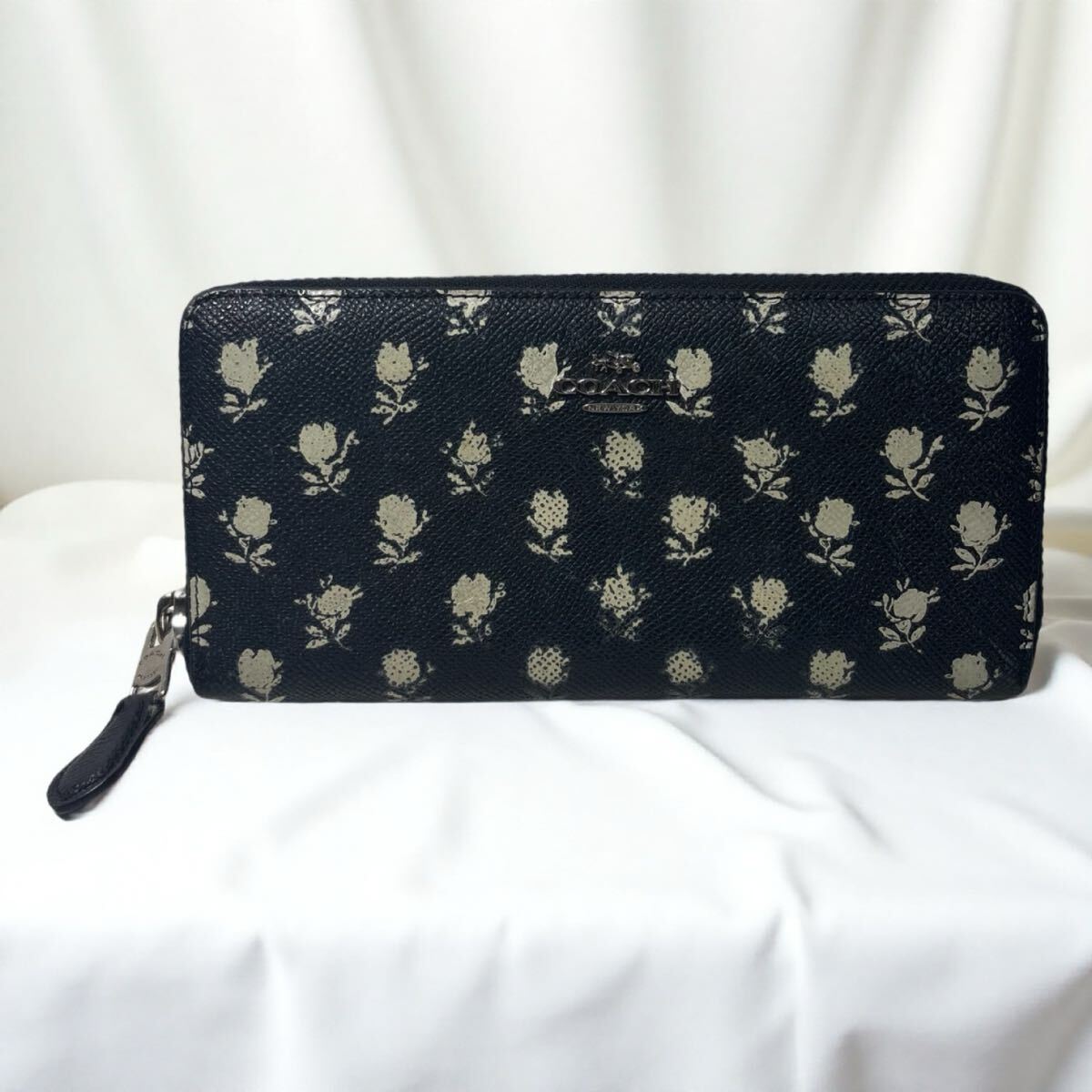 COACHの花柄(チューリップ柄)がフェミニンで上品なラウンドファスナーの長財布です♪