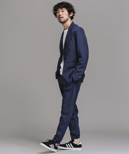 美品 セットアップ nano universe ジャケット パンツ テーラード スーツ ナノユニバース サイズ s 6720118008 無地 ネイビー 紺 青