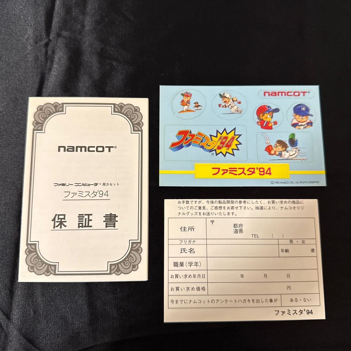 【極美品・完品】ファミスタ94 未使用シール等付属品全付 ファミコン FC コレクション品 コレクター引退 ファミリーコンピューター