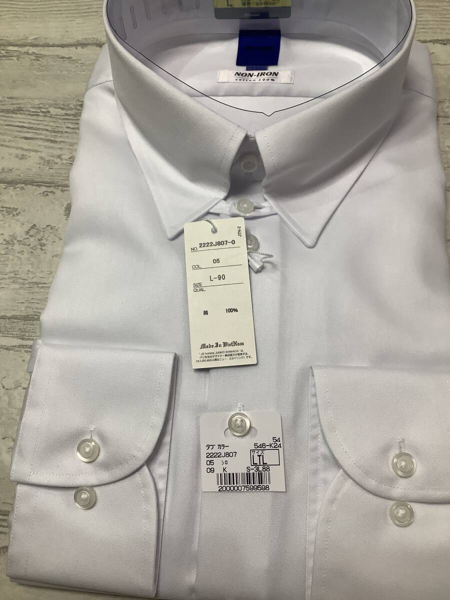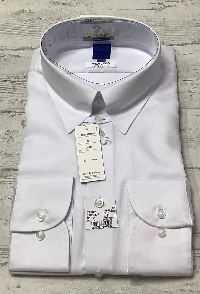 新品未使用 41-90 長袖Lサイズ ★綿100%★白 タブカラー★ドレスシャツ  ノンアイロンコットン★