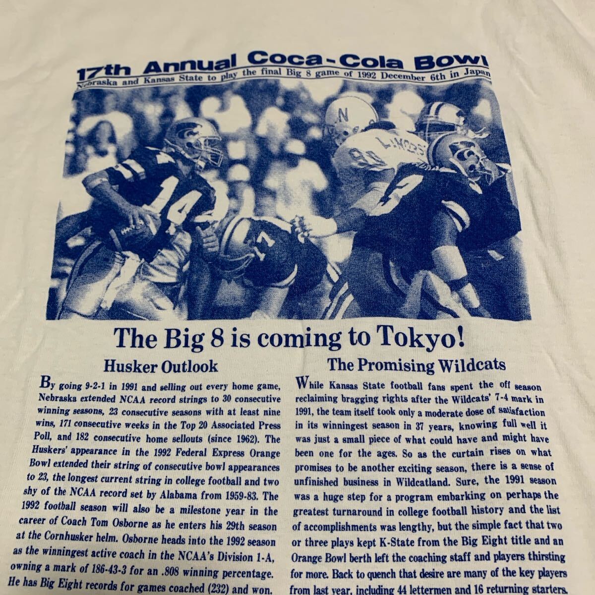 激レア 1992年 ネブラスカ大学 vs カンザス大学 コカコーラボウル アメフトTシャツ デッドストック シングルステッチ