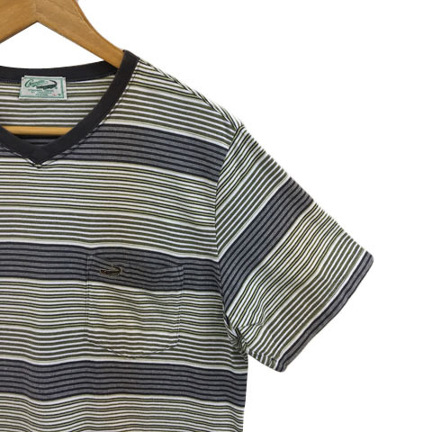 クロコダイル CROCODILE カットソー Tシャツ Vネック プルオーバー ボーダー 半袖 L グレー 緑 グリーン メンズ