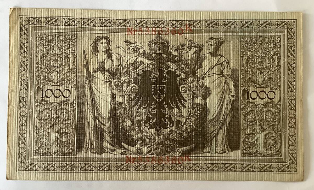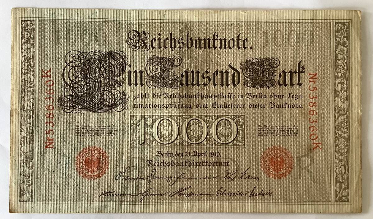 ドイツ帝国 1910年発行された大型紙幣。サイズ:188110ミリ。歴史的重みあるコレクションとなる。