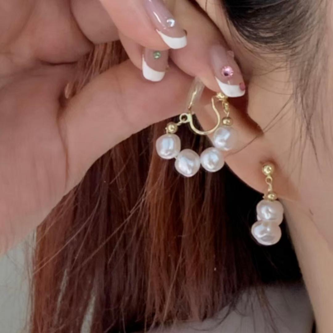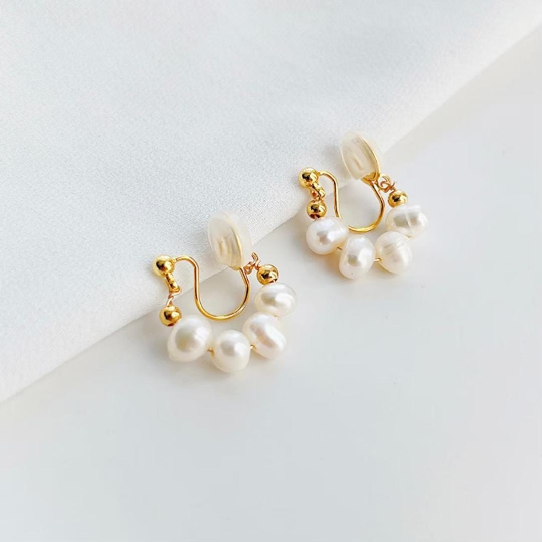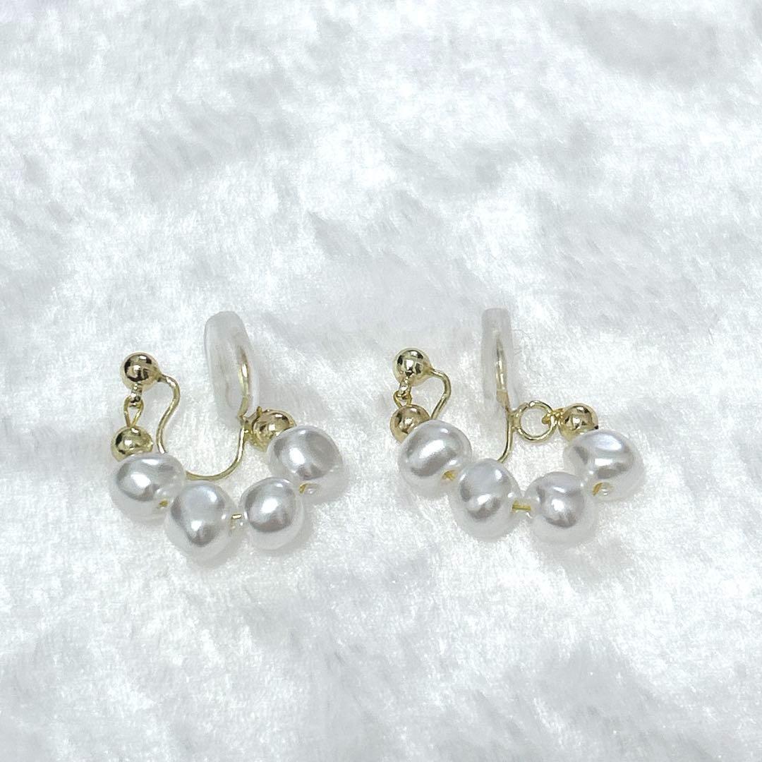 【商品説明】:落ち着き感のある4連パールピアスです。クリップ式なので、簡単につけることができます(*^ ^*)
