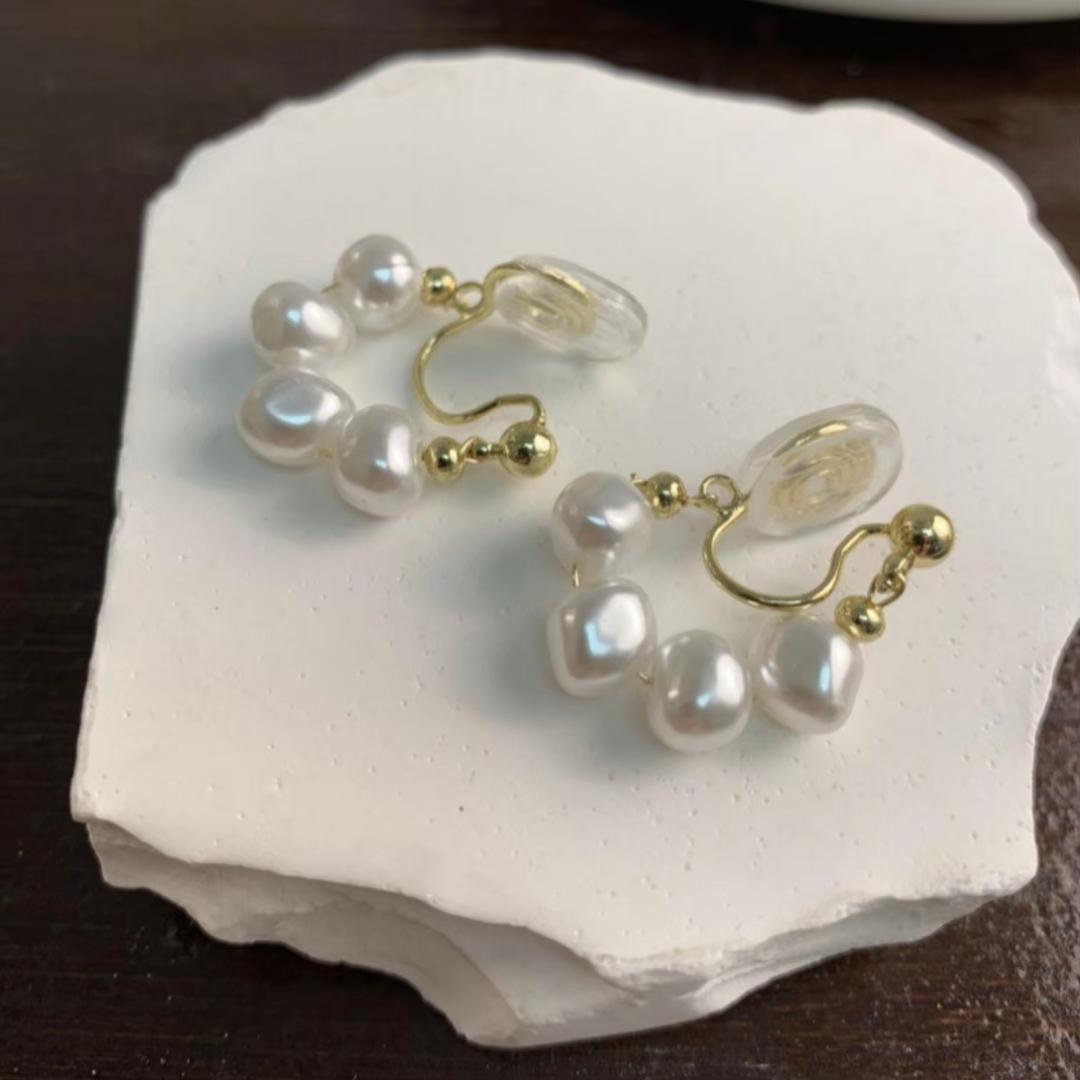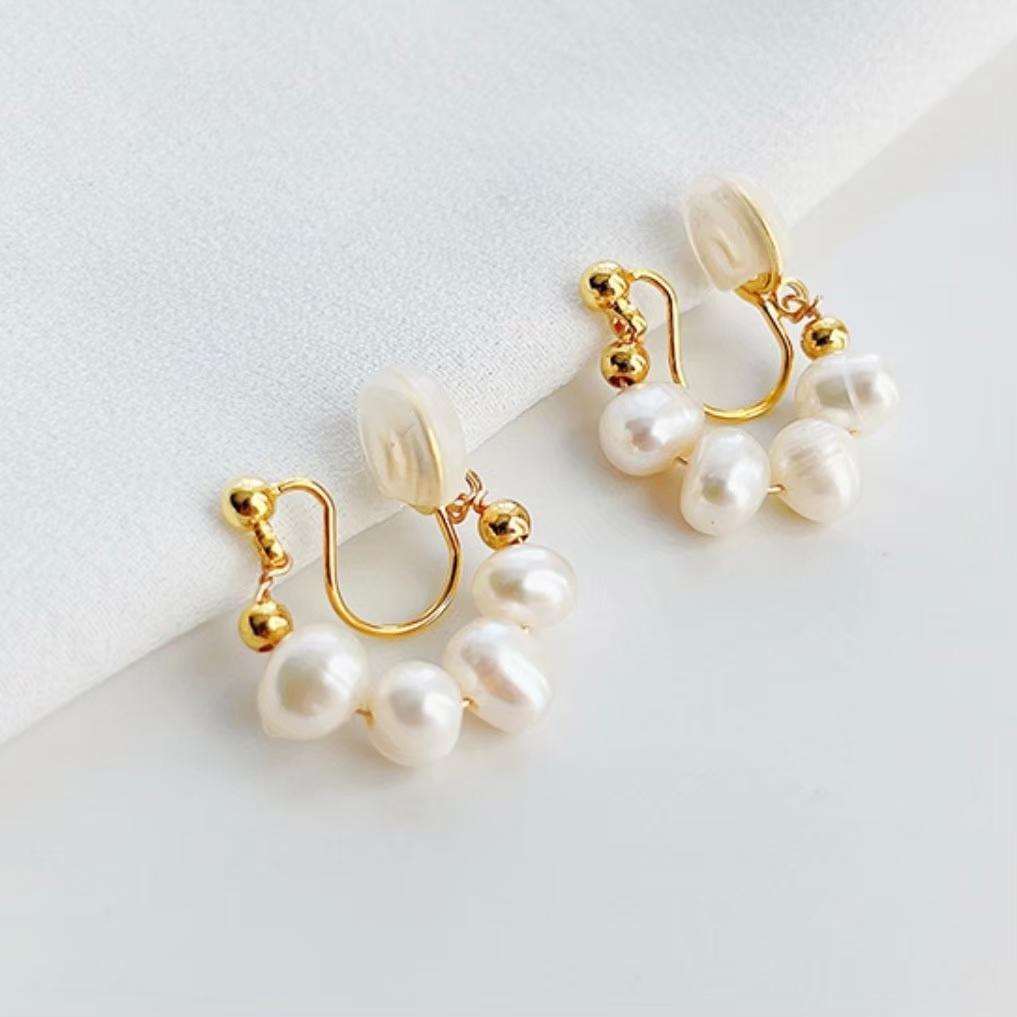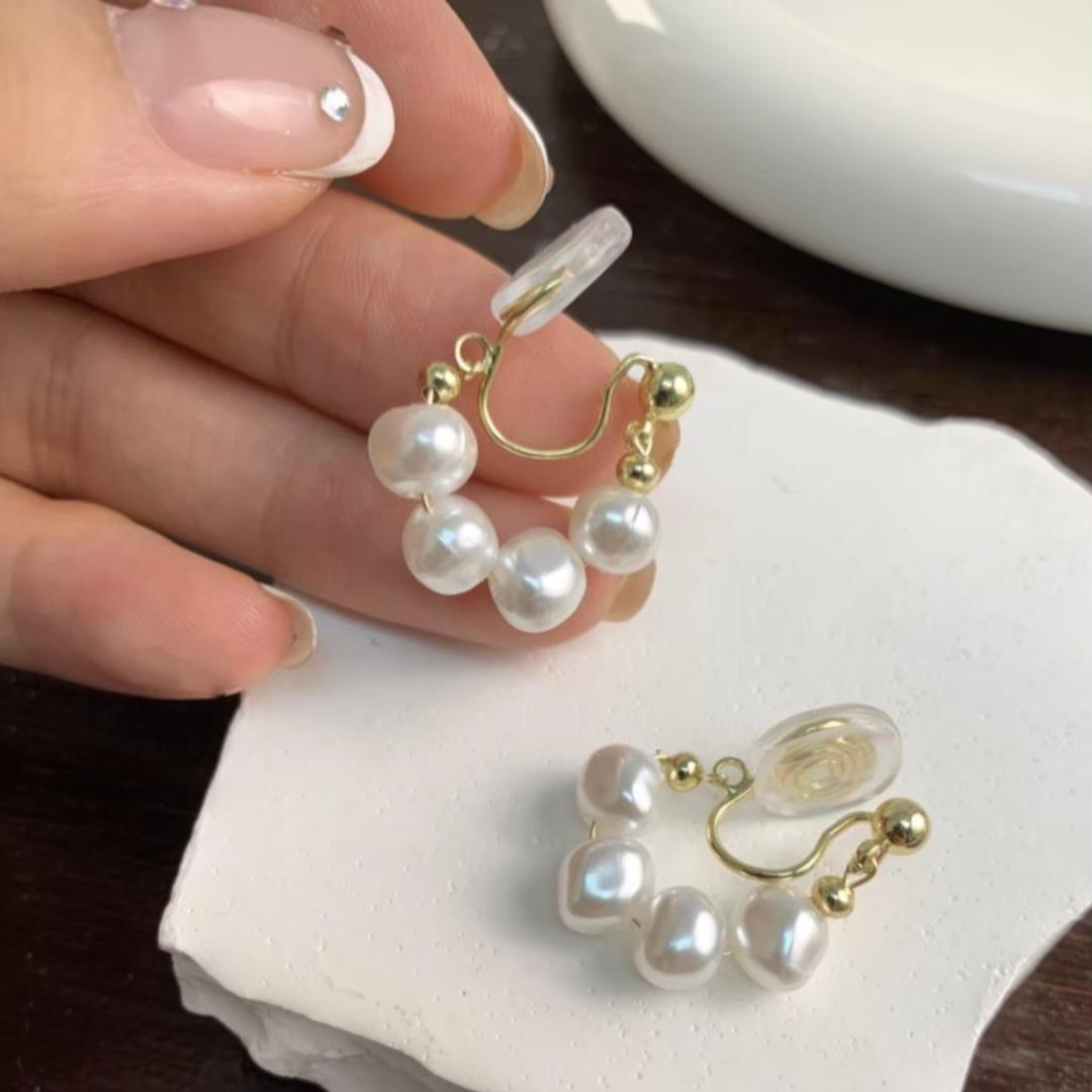 【商品説明】:落ち着き感のある4連パールピアスです。クリップ式なので、簡単につけることができます(*^ ^*)