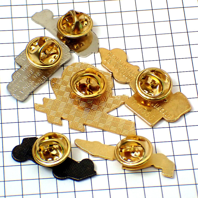 | ピンズは、裏側に針が付いており、金属の留め金でとめるようになっています。 留め金が付属しています。新品の留め金も一緒に発送いたします。 | |